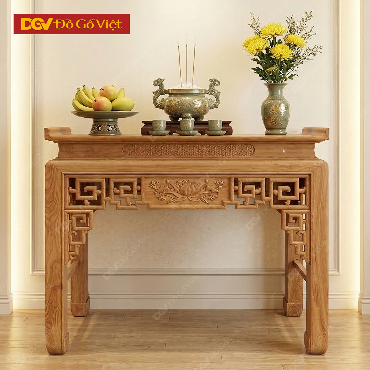 Án Gian Thờ Gỗ Gõ Đỏ 1m27 Mẫu Chạm Sen Cao Cấp