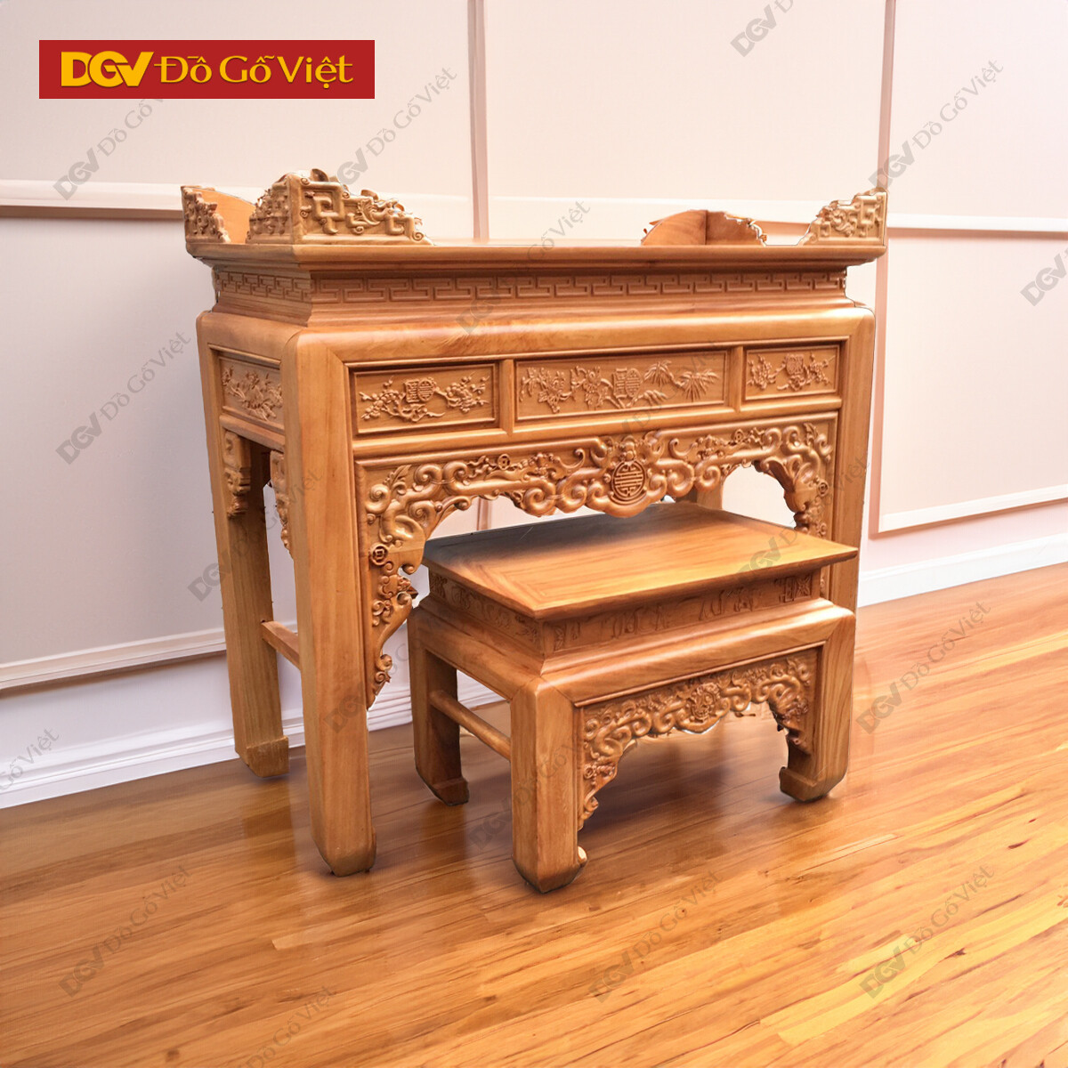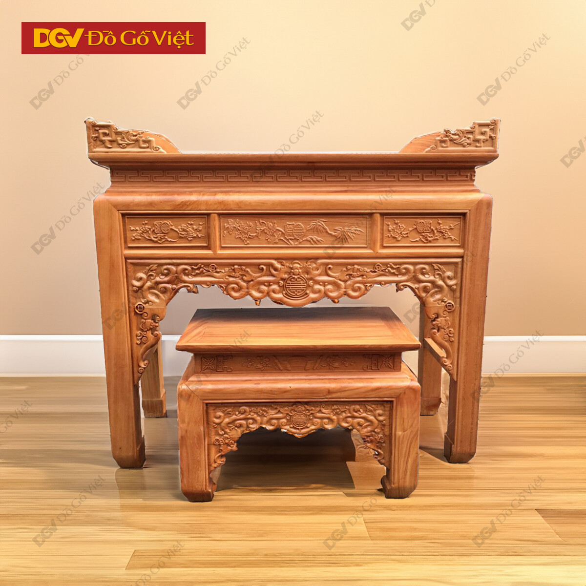 Bàn Thờ Án Gian Chạm Sen Gỗ Gõ Đỏ 1m07 Kèm Tủ Táp
