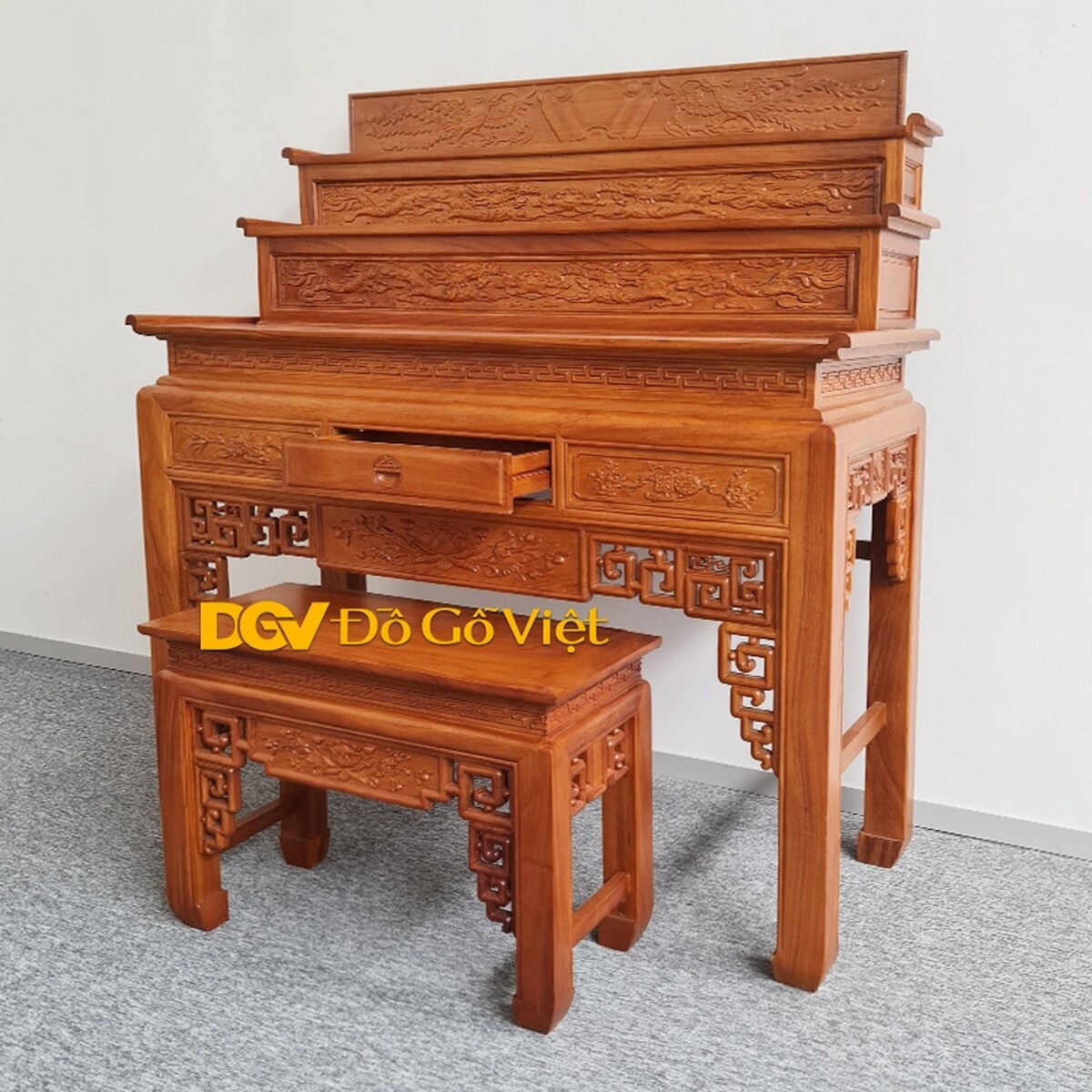 Bàn Thờ Án Gian Gỗ Gõ Đỏ Tự Nhiên Mẫu Như Ý 1m27