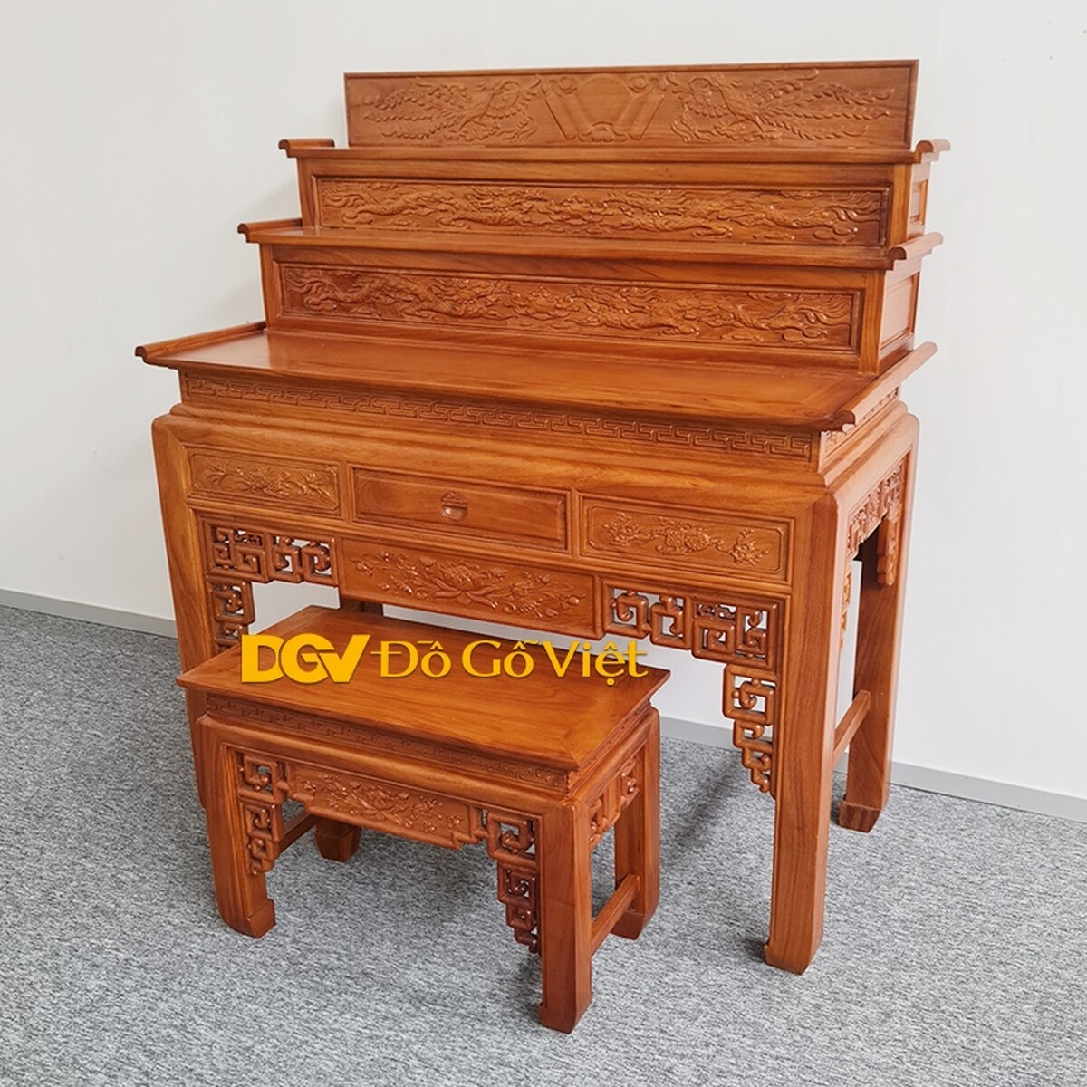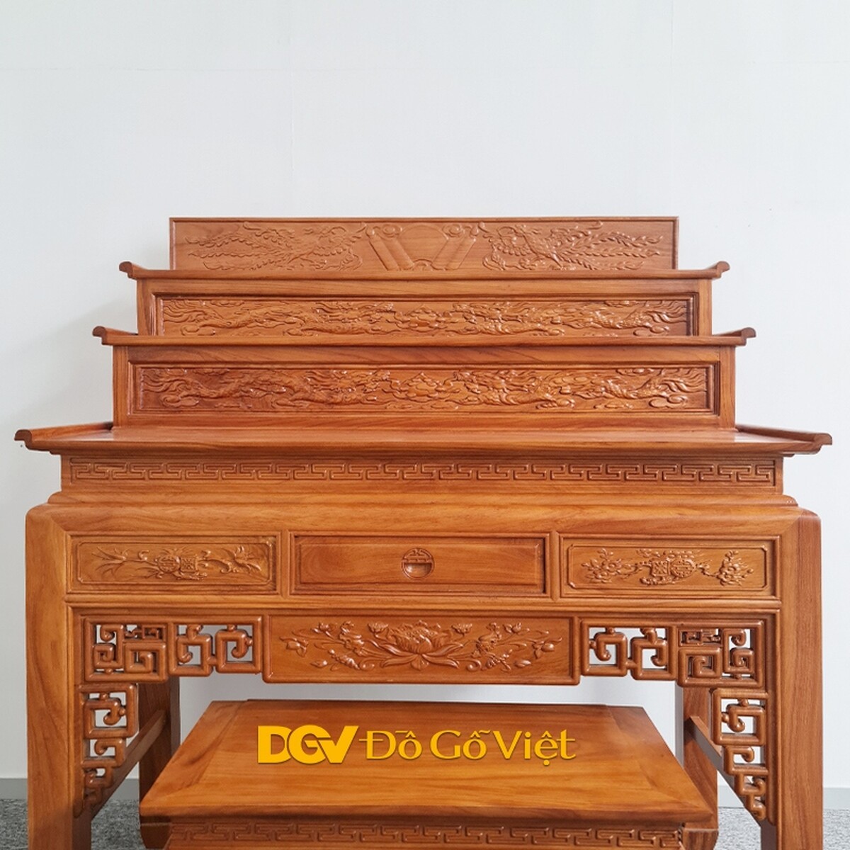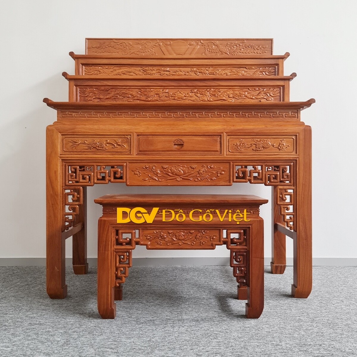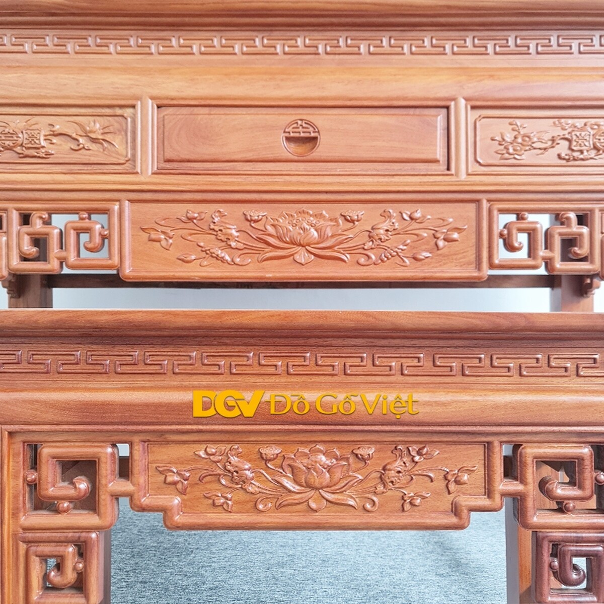 Án Gian Thờ Gỗ Gõ Đỏ 1m27 Mẫu Chạm Sen Cao Cấp