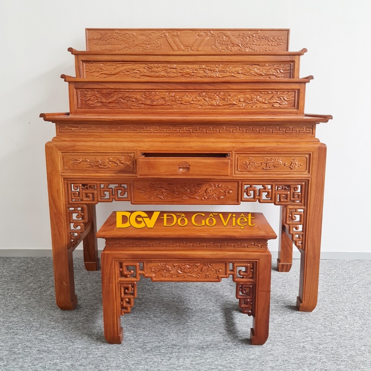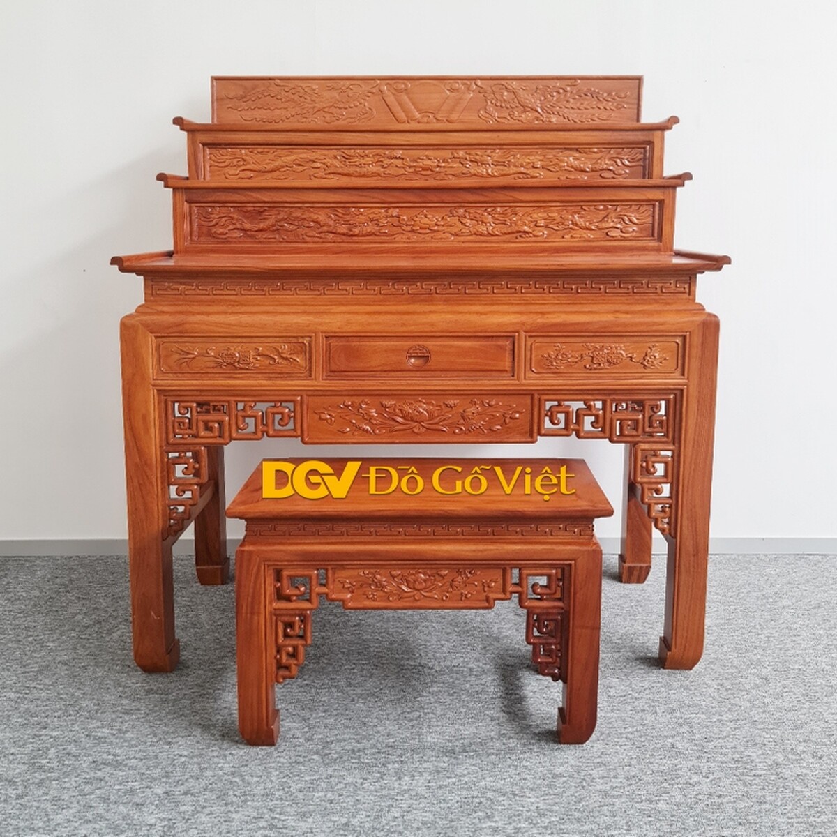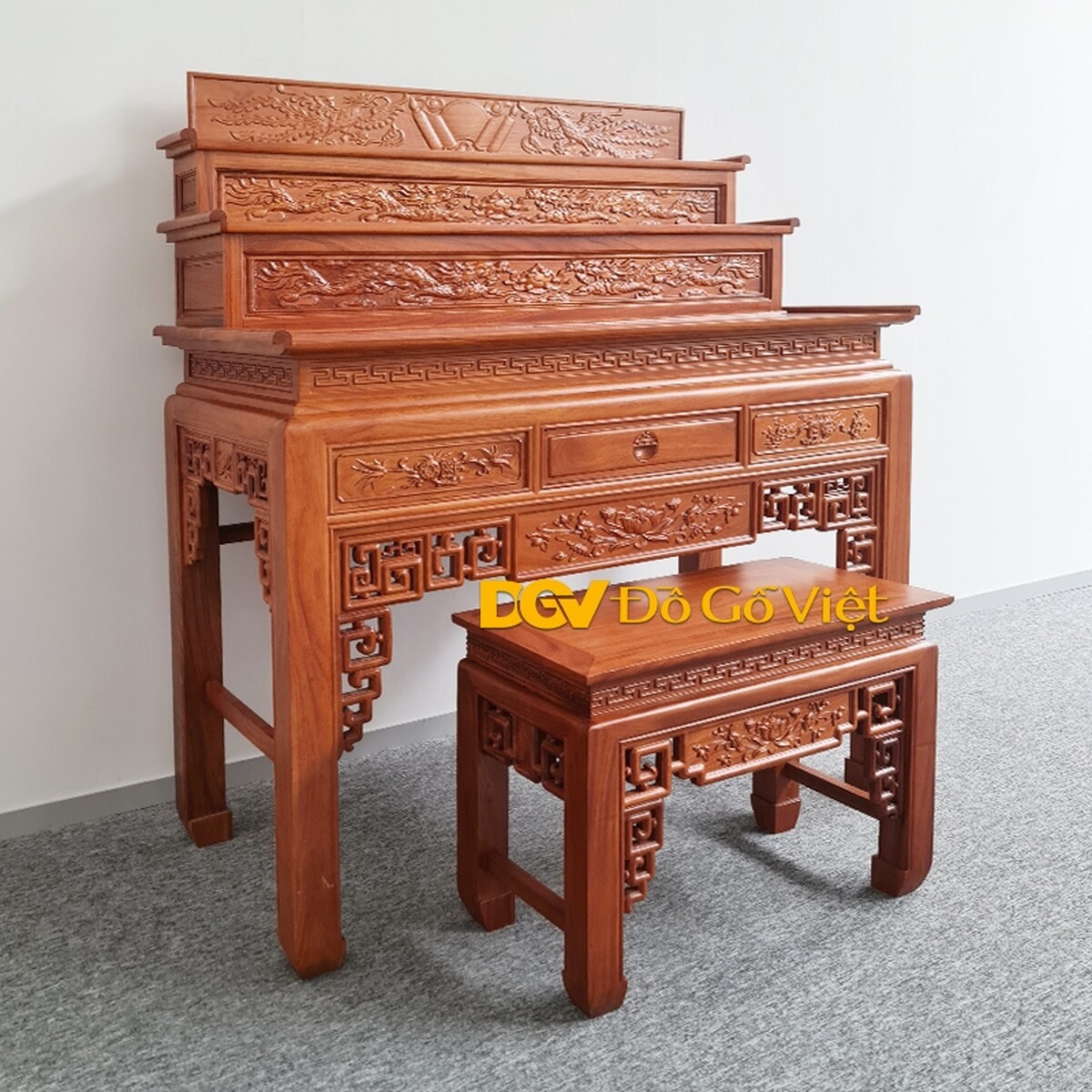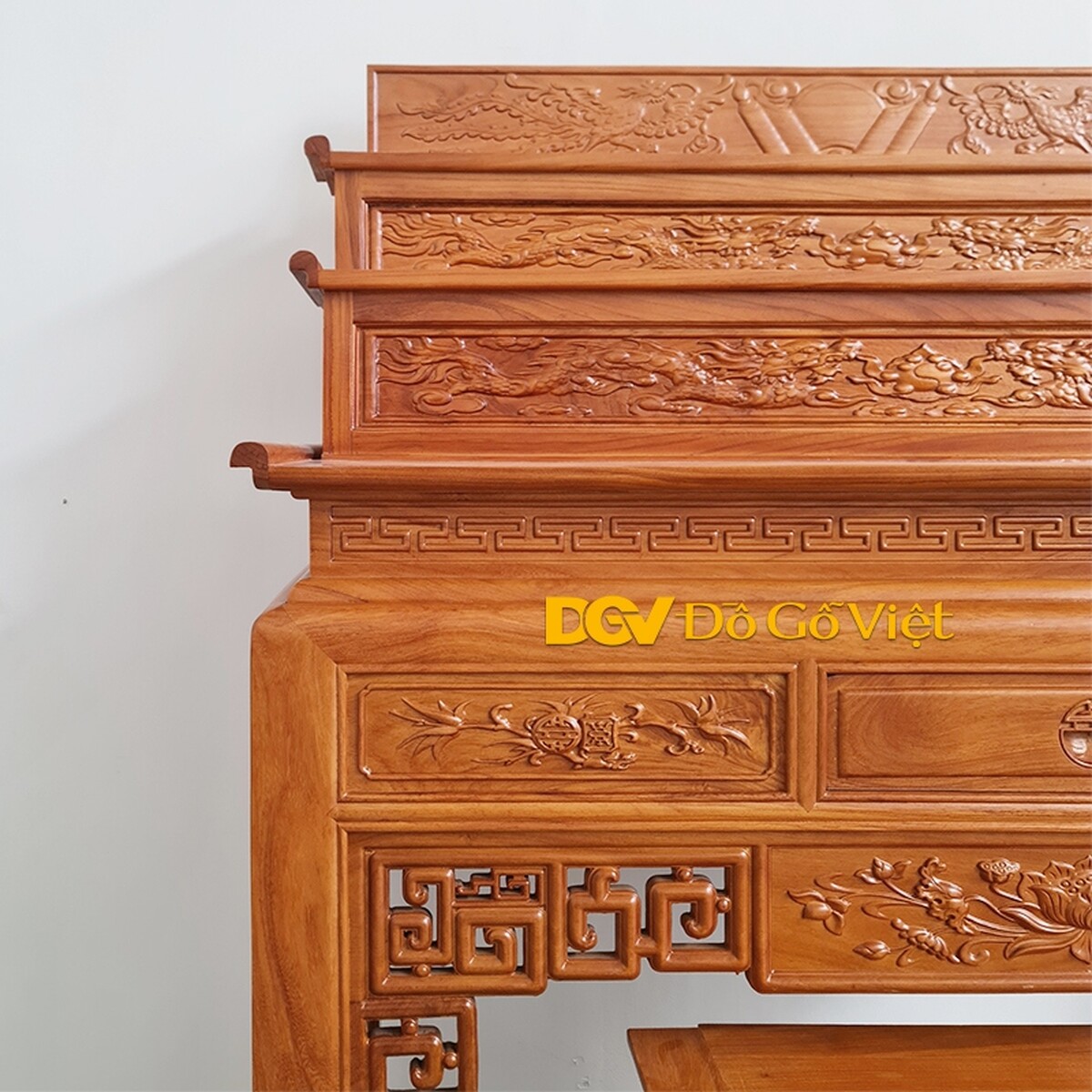 Án Gian Thờ Gỗ Gõ Đỏ 1m27 Mẫu Chạm Sen Cao Cấp