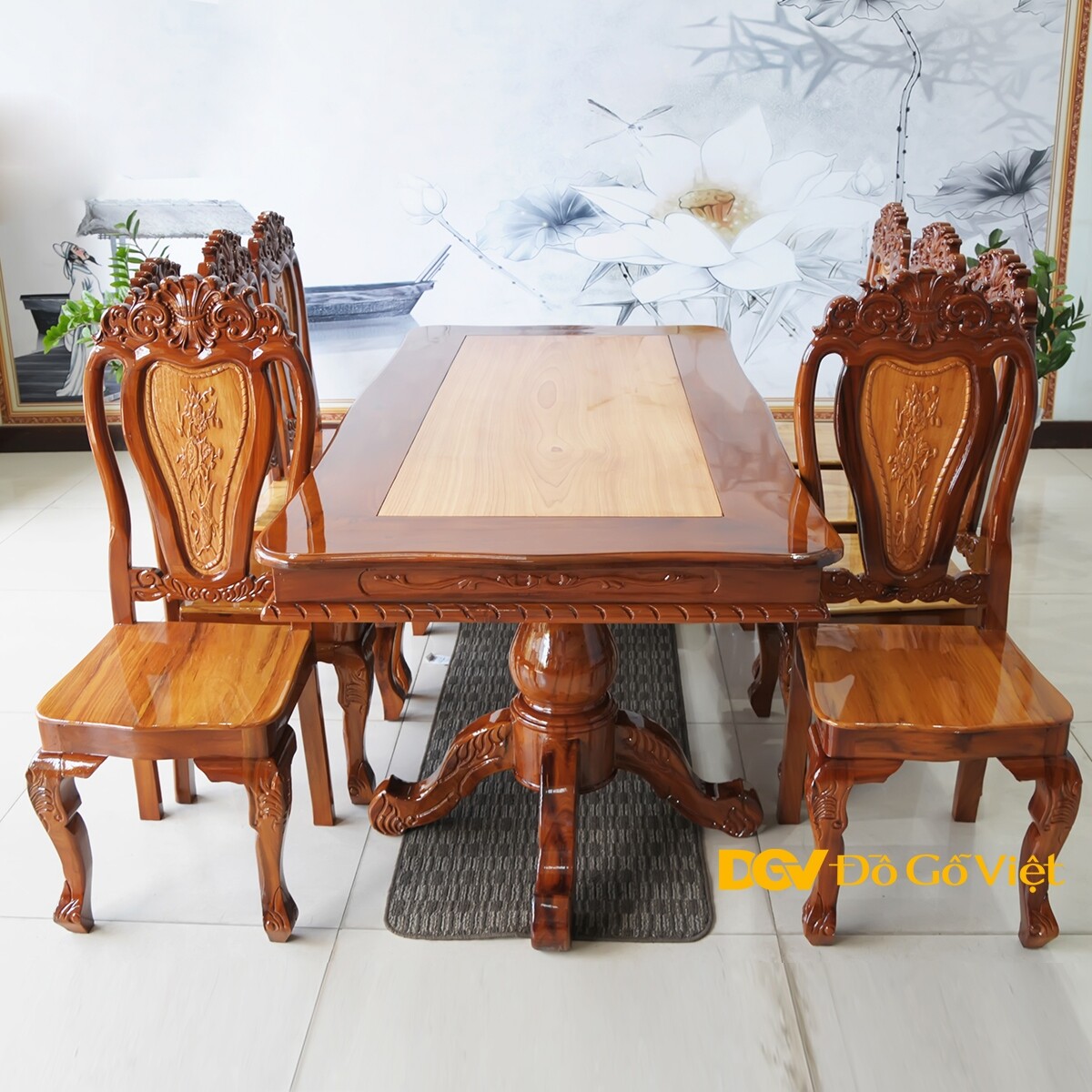 Bộ Bàn Ăn Gỗ Gõ Đỏ Chân To 1m9 8 Ghế