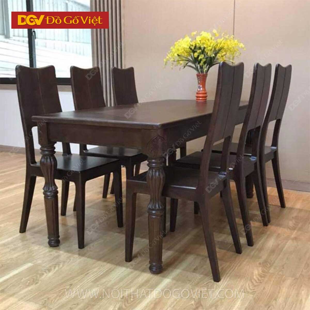 Bàn Ăn Chân Tiện Gỗ Sồi Nga Màu Nâu Đậm 1m6 6 Ghế Bền Bỉ