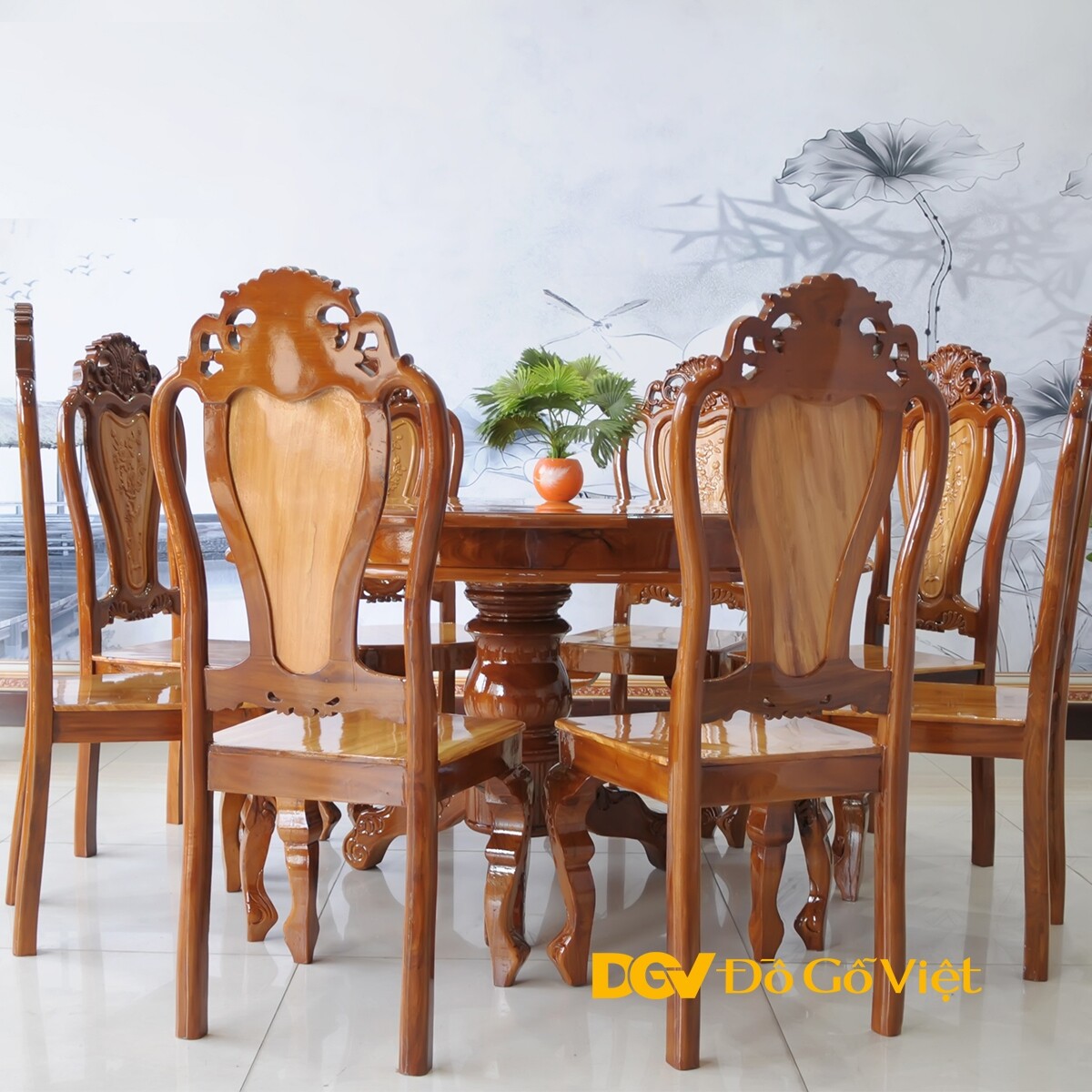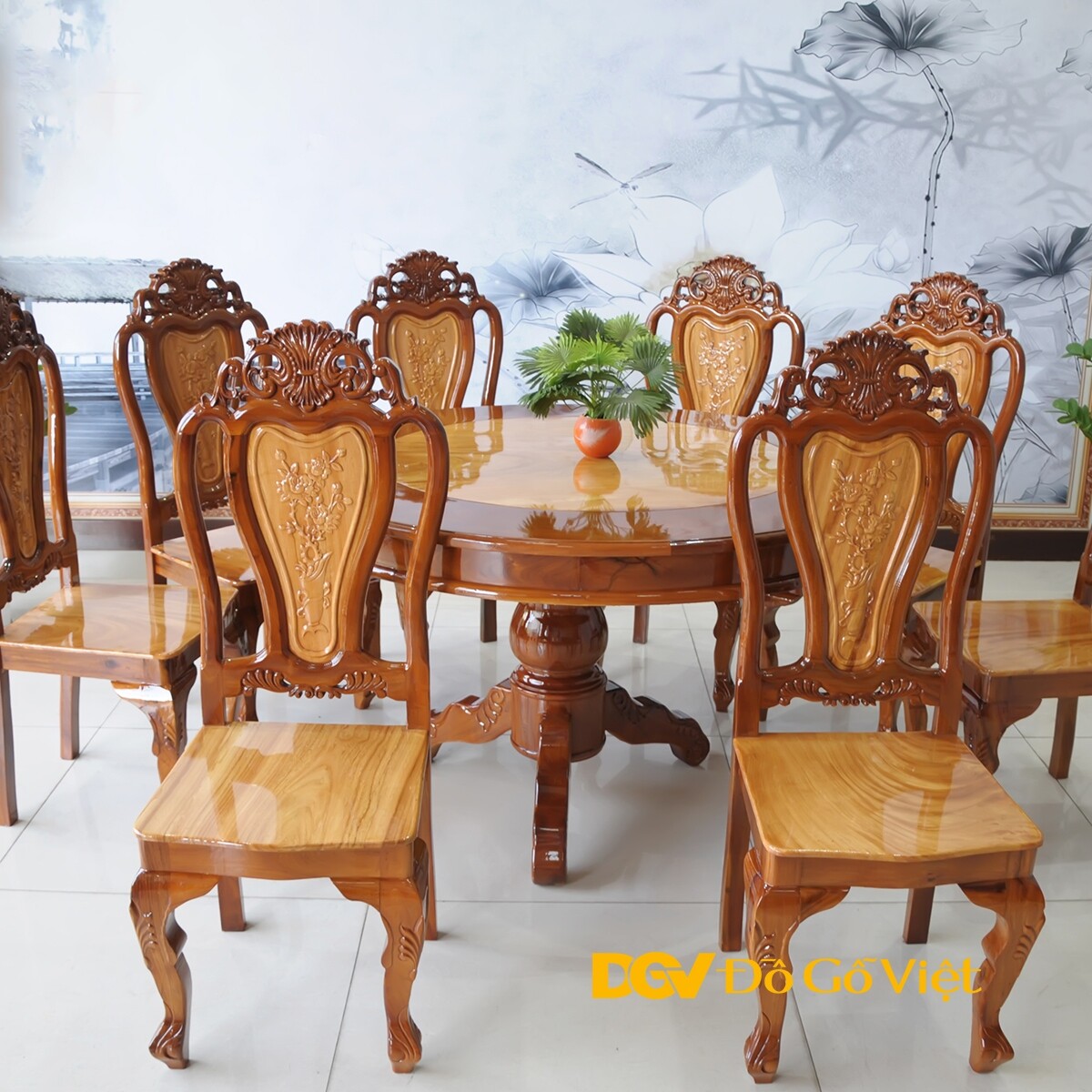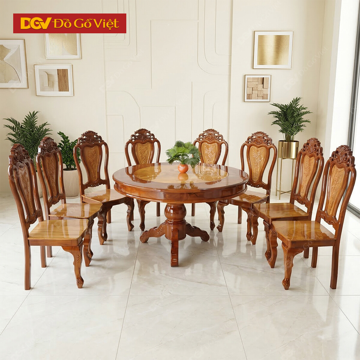 Mầu Bàn Ăn Tròn Căm Xe Mặt Gõ Bộ 8 Ghế Đẹp Giá Rẻ