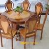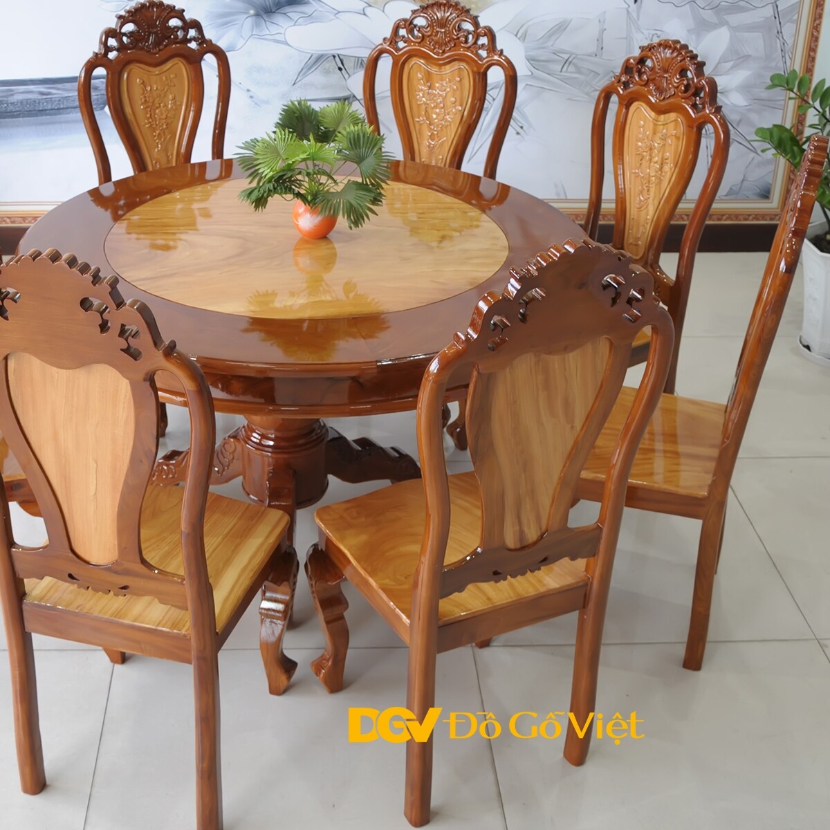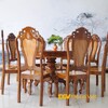 Bộ Bàn Ăn Gỗ Gõ Đỏ Tròn Cạnh Chân Chữ U Bo Cong Cách Điệu