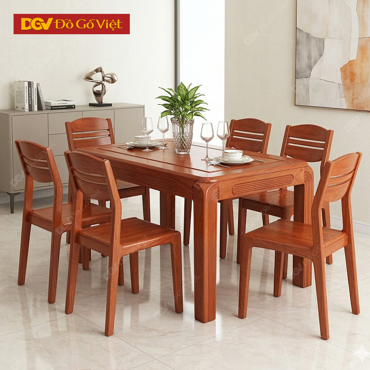 Bàn Ăn Gia Đình Gỗ Xoan Đào 1m6 6 Ghế Hiện Đại Giá Rẻ