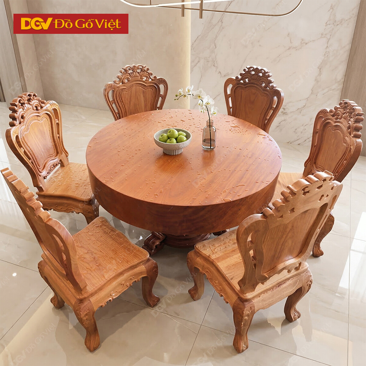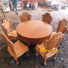 Bộ Bàn Ăn Gỗ Gõ Đỏ Tròn Cạnh Chân Chữ U Bo Cong Cách Điệu