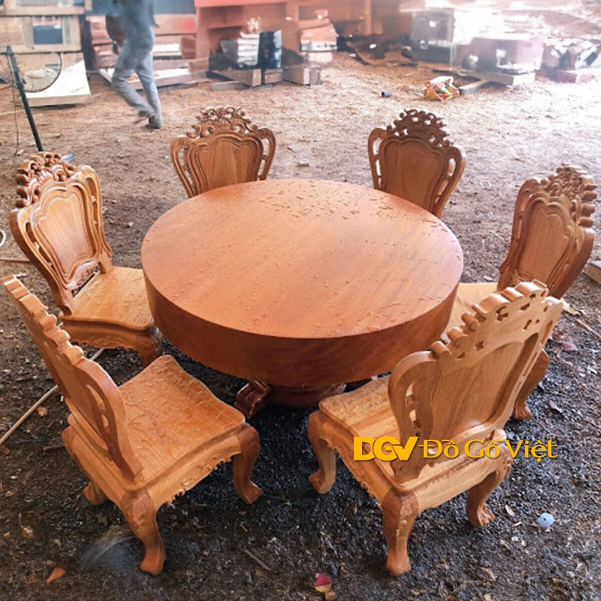 Bàn Ăn Gõ Đỏ Mặt Tròn Gỗ Nguyên Tấm Dày 18cm Đẹp Giá Tốt