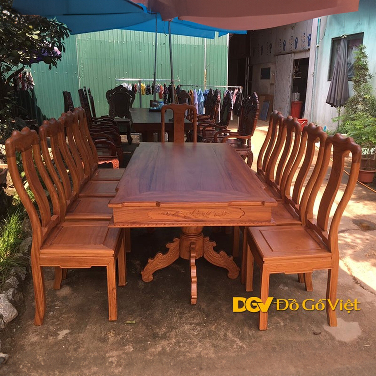 Bộ Bàn Ăn Gỗ Gõ Đỏ Chân To 1m9 8 Ghế