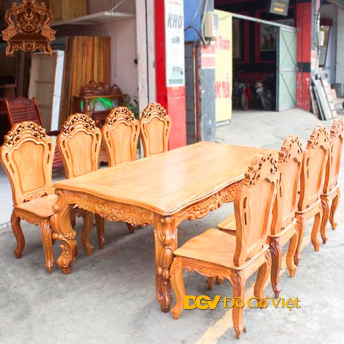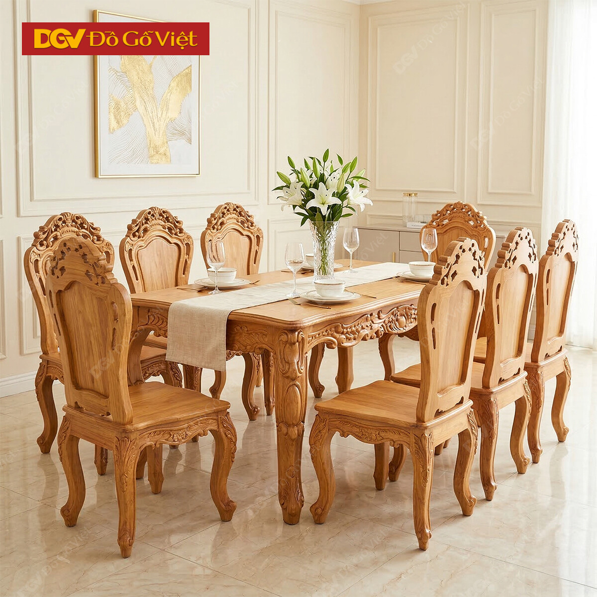 Bàn Ăn Gỗ Gõ Đỏ Tự Nhiên Chân Trụ Kiểu Luis Đẹp