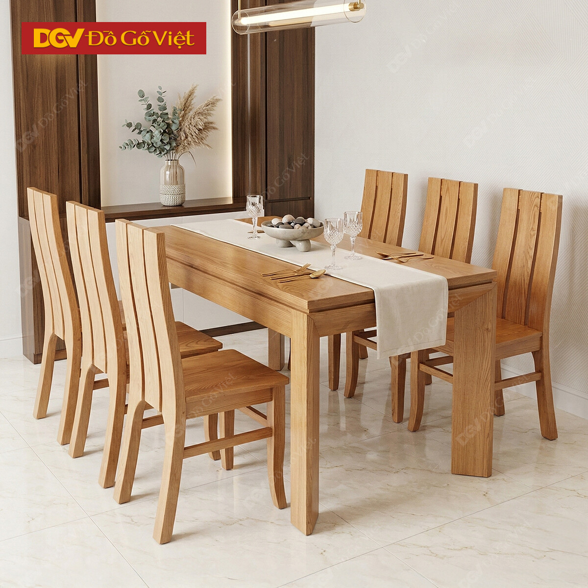 Bộ Bàn Ăn Đẹp Giá Rẻ Gỗ Tự Nhiên Sồi Nga 1m6 6 Ghế