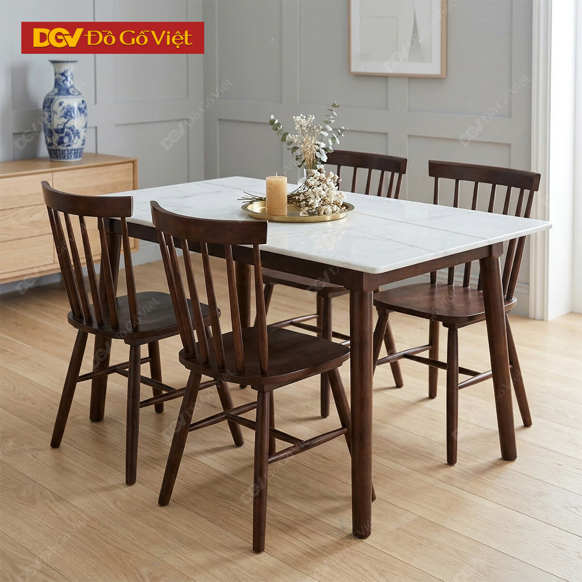 Bàn Ăn Mặt Đá 4 Ghế Gỗ Cao Su Đẹp Giá Rẻ