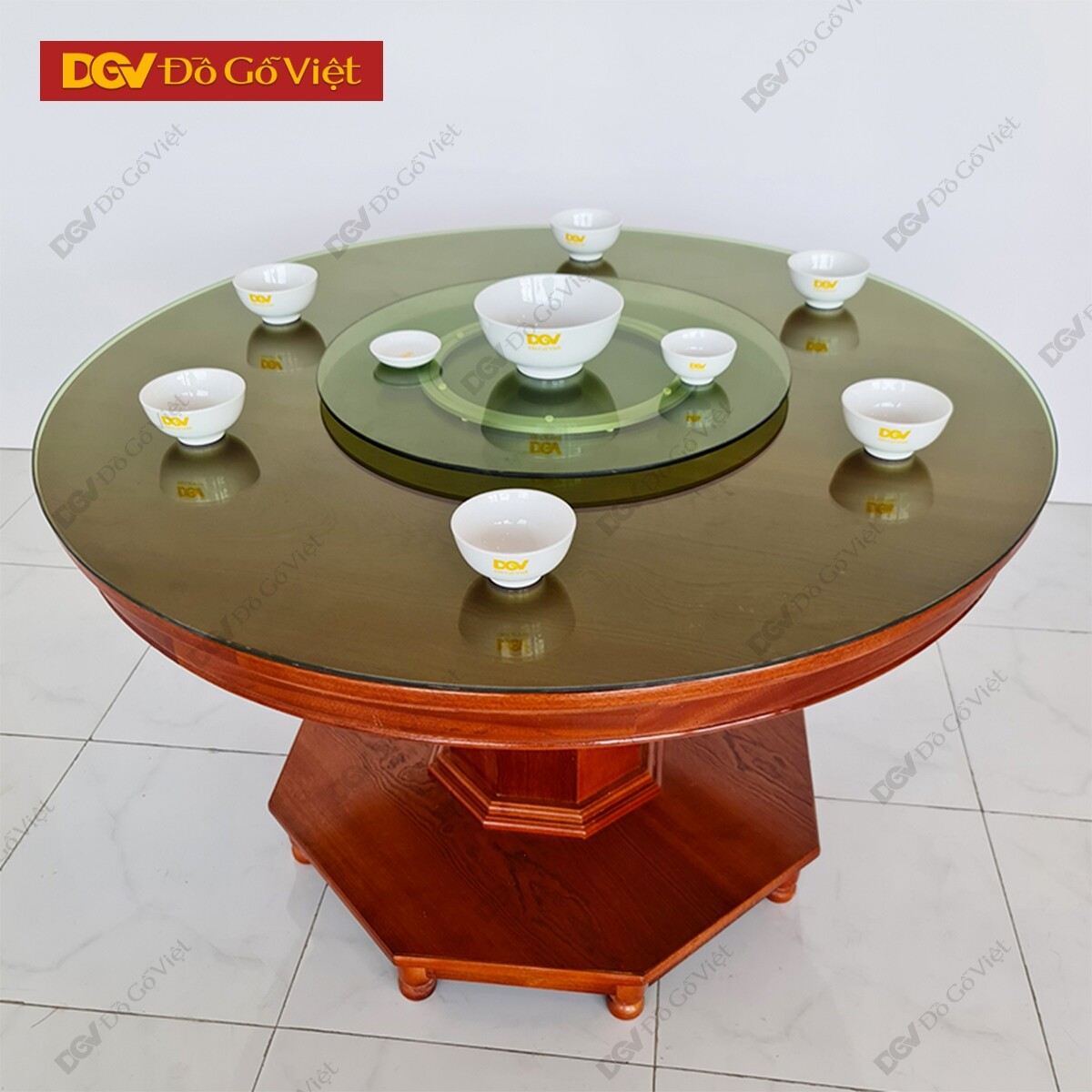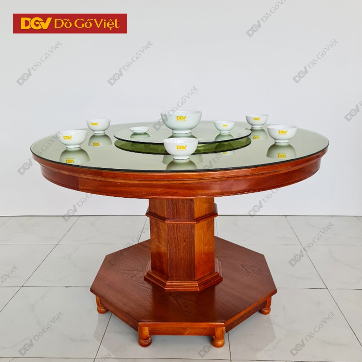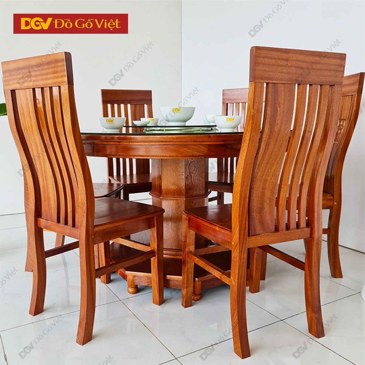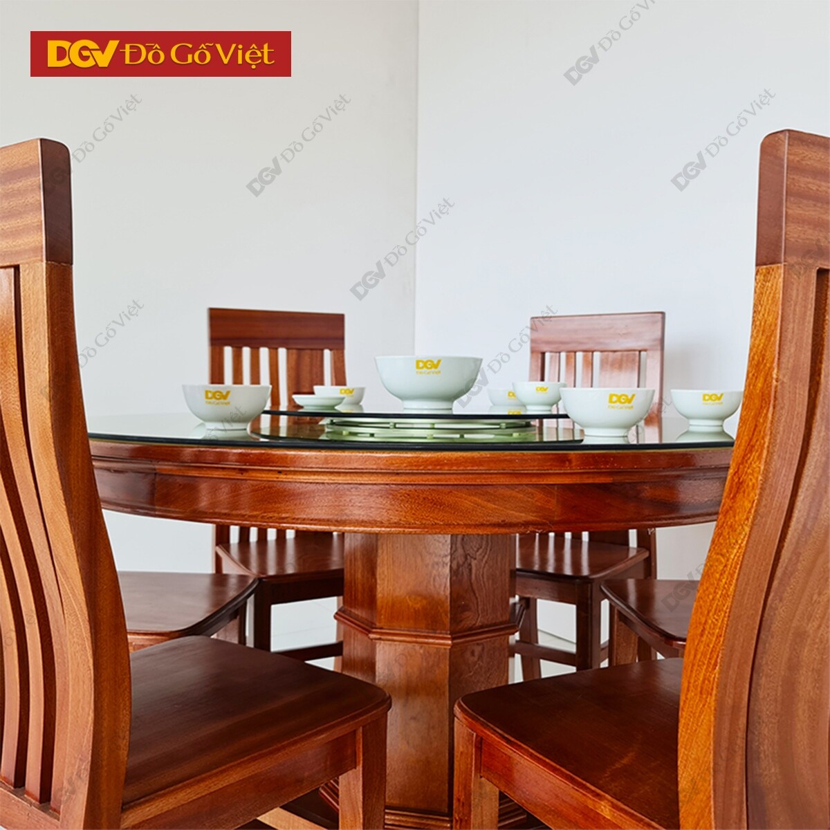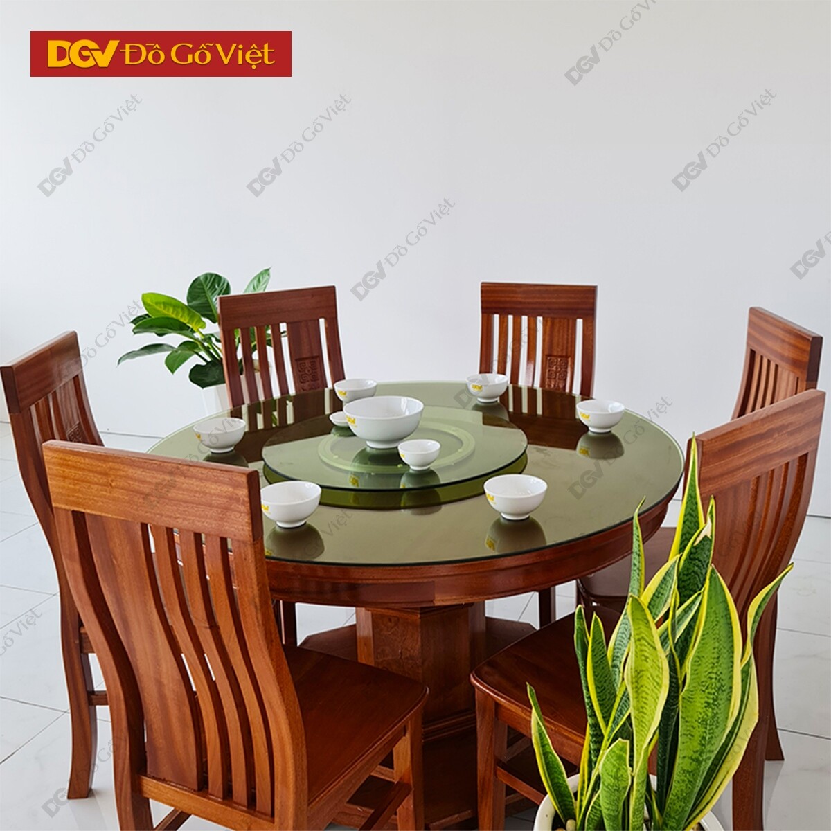 Bàn Ăn Tròn Mâm Xoay Gỗ Xoan Đào 6 Ghế