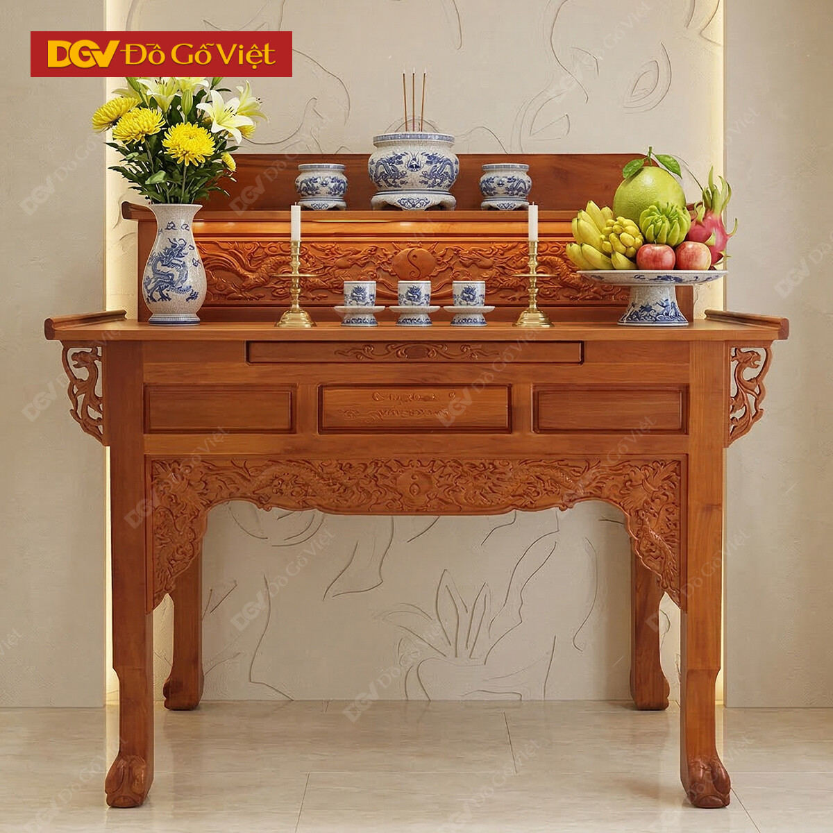Bàn Thờ 2 Tầng Gỗ Căm Xe Chạm Rồng 1m27