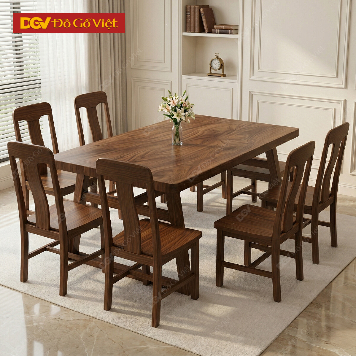 Bàn Ghế Ăn Gỗ Óc Chó Chân Chữ A Ghế Tựa Lưng Cao Hiện Đại