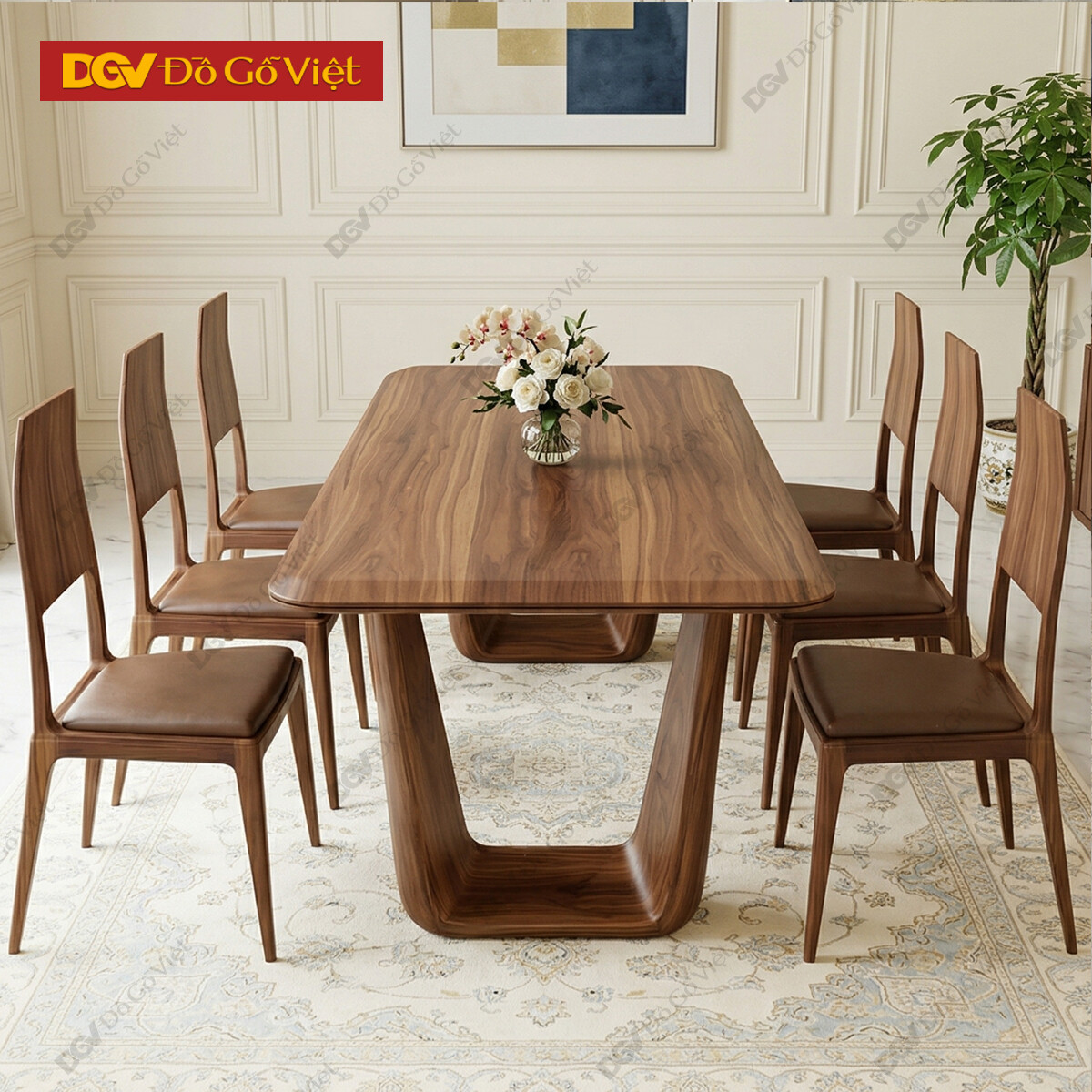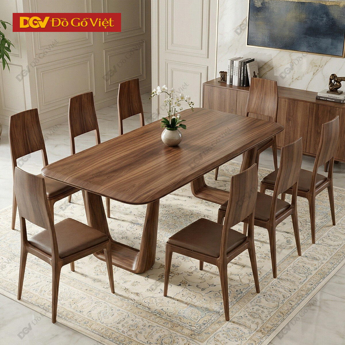 Bộ Bàn Ăn Gia Đình Gỗ Óc Chó Tự Nhiên Đẳng Cấp Lưng Tròn