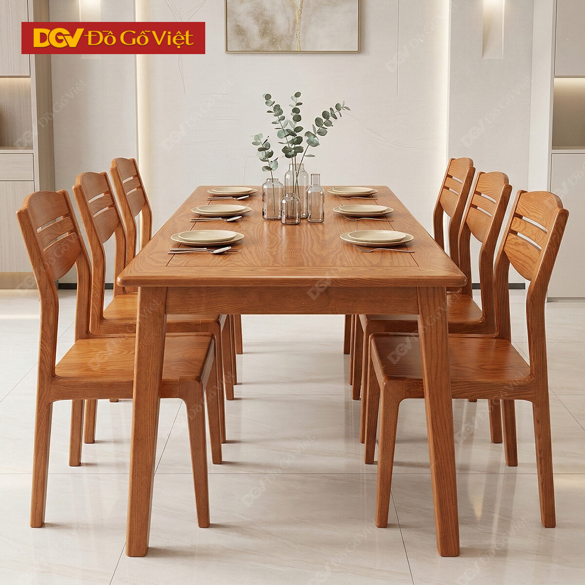 Bàn Ghế Gỗ Sồi Nga Để Phòng Ăn Màu Nâu Vàng 1m6 6 Ghế Đẹp Giá Rẻ