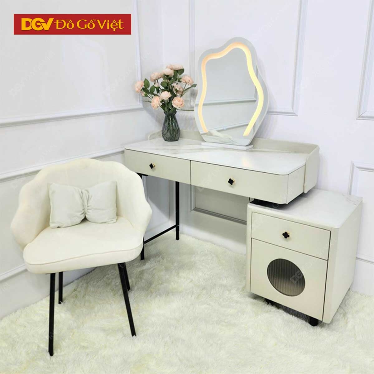 Bàn Phấn Hiện Đại Gương Cong Màu Trắng Đẹp Bền Giá Tốt