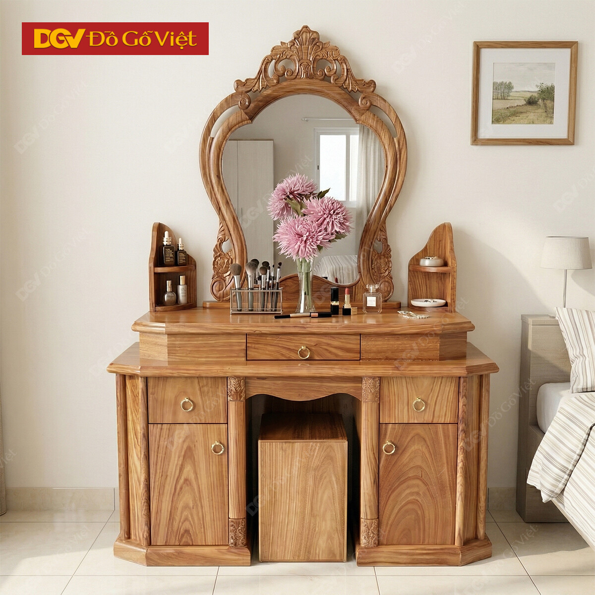 Bàn Phấn Gỗ Hương Xám Kèm Gương Trang Điểm Cao Cấp
