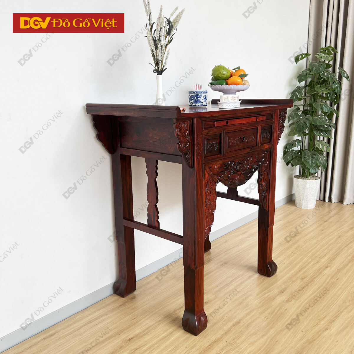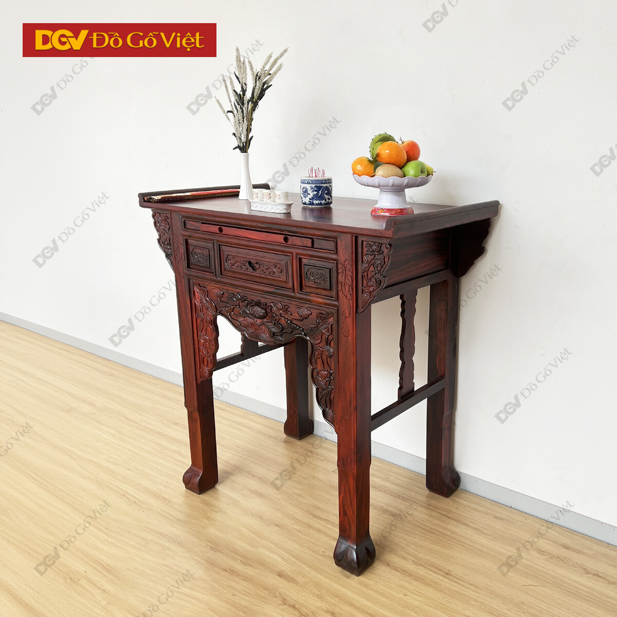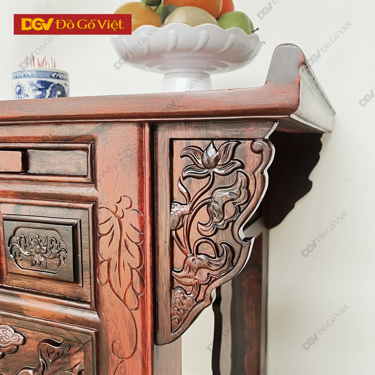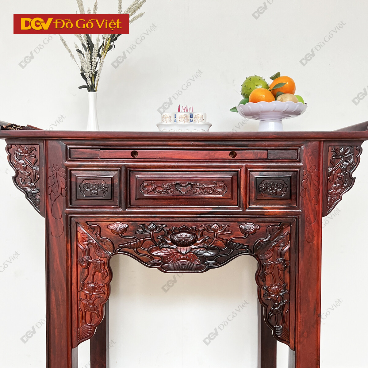 Bàn Thờ 1 Tầng Gỗ Muồng Chạm Hoa Sen Đẹp Mắt Giá Rẻ