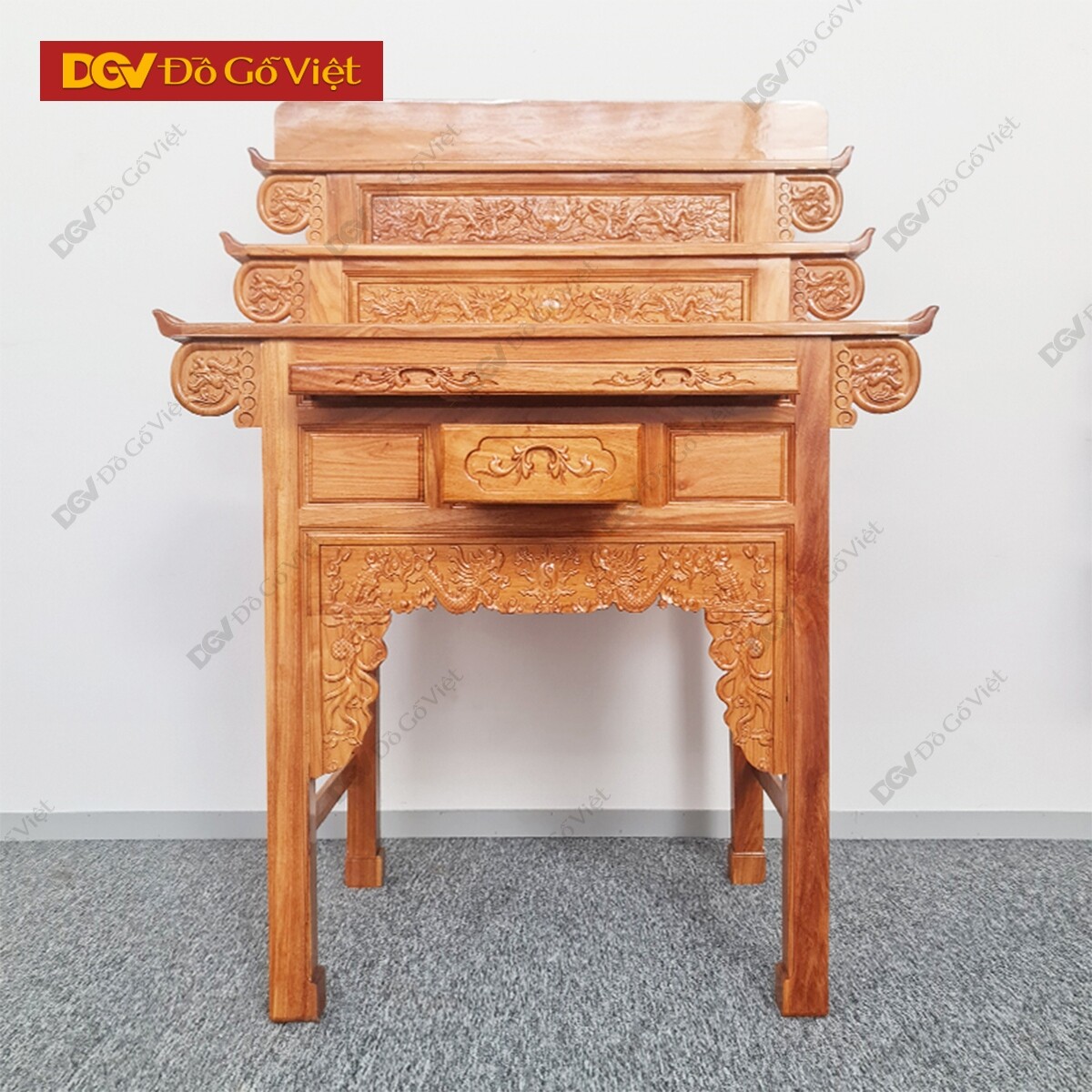 Bàn Thờ 2 Tầng Gỗ Gõ Đỏ Chạm Rồng 1m27