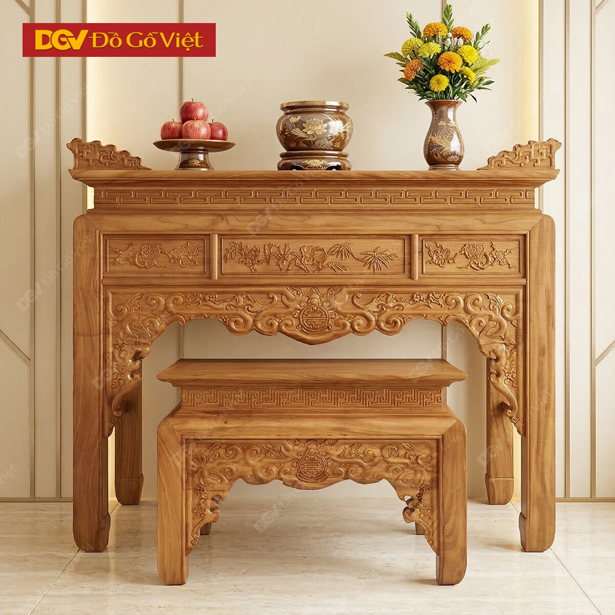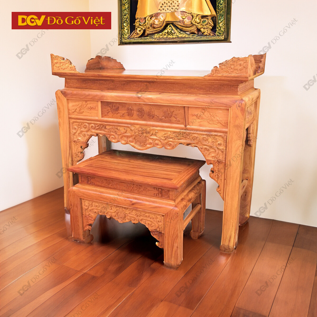 Án Gian Thờ Gỗ Gõ Đỏ 1m27 Mẫu Chạm Sen Cao Cấp
