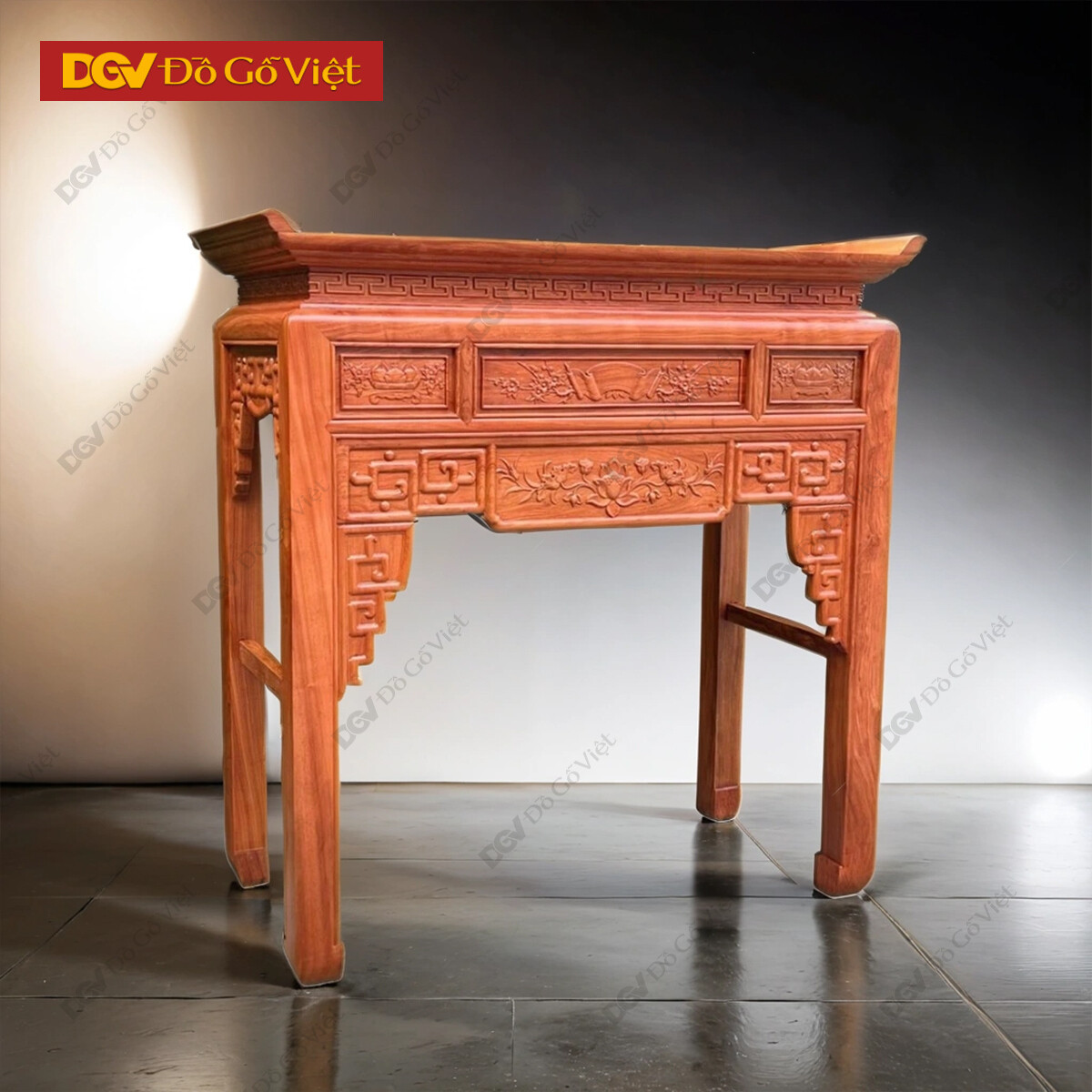 Án Gian Thờ 1 Tầng Gỗ Hương Đá Cao Cấp Chạm Sen Đẹp