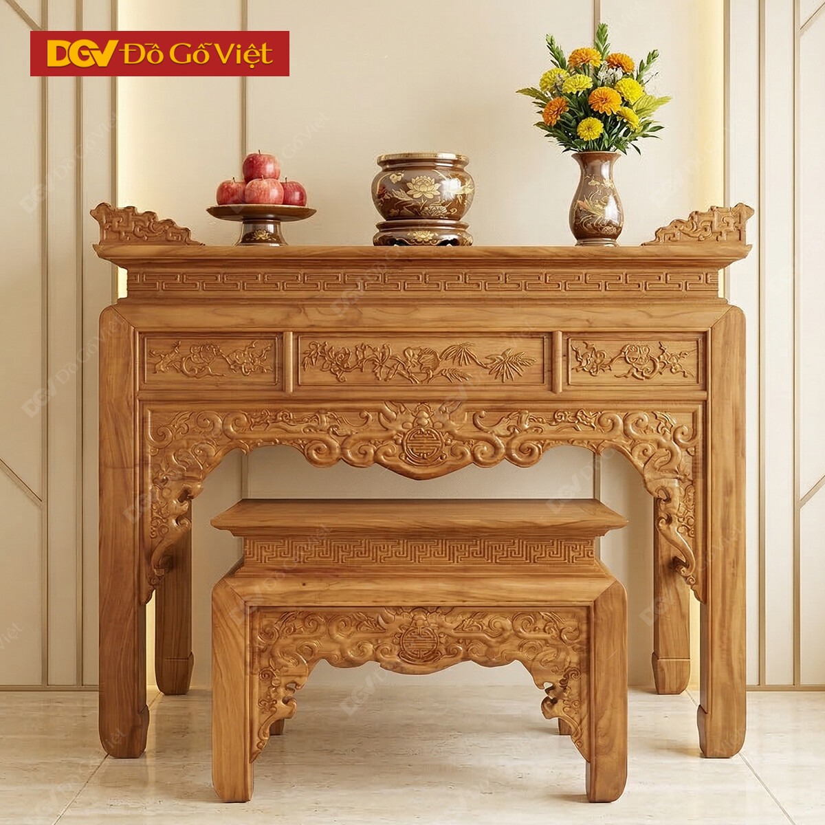 Án Gian Thờ Gỗ Gõ Đỏ 1m27 Mẫu Chạm Sen Cao Cấp