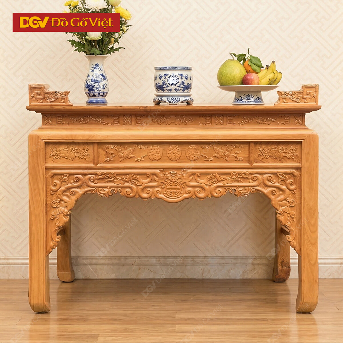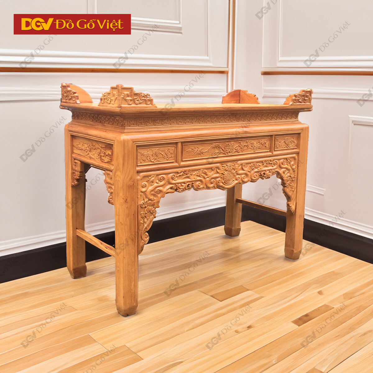 Án Gian Thờ Gỗ Gõ Đỏ 1m27 Mẫu Chạm Sen Cao Cấp