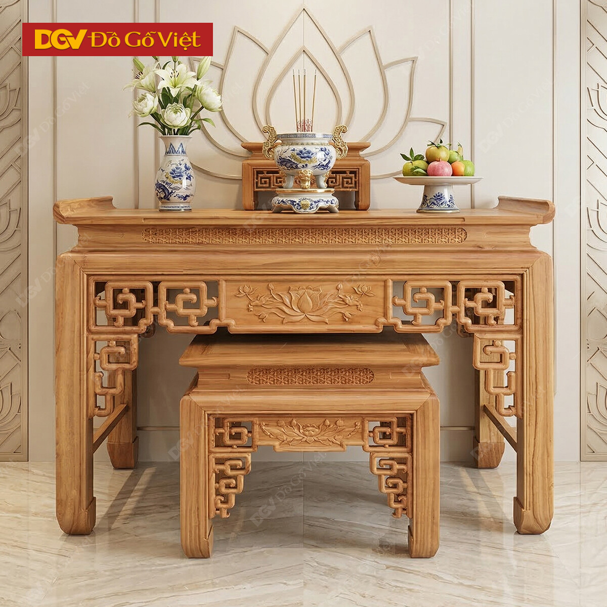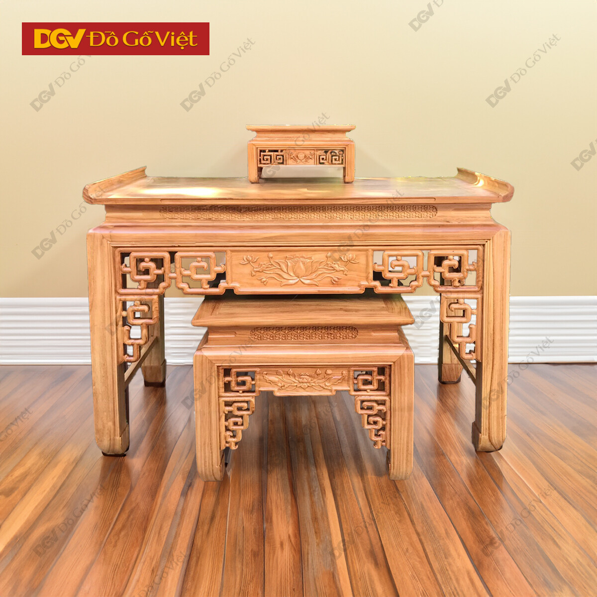 Bàn Thờ Án Gian 1m75 Gỗ Gõ Đỏ Bộ 3 Món Chạm Sen Tinh Tế