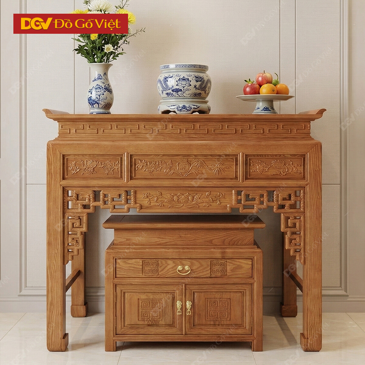 Án Gian Thờ 1 Tầng Cặp 2 Chiếc Chạm Họa Văn Đẹp Tinh Tế