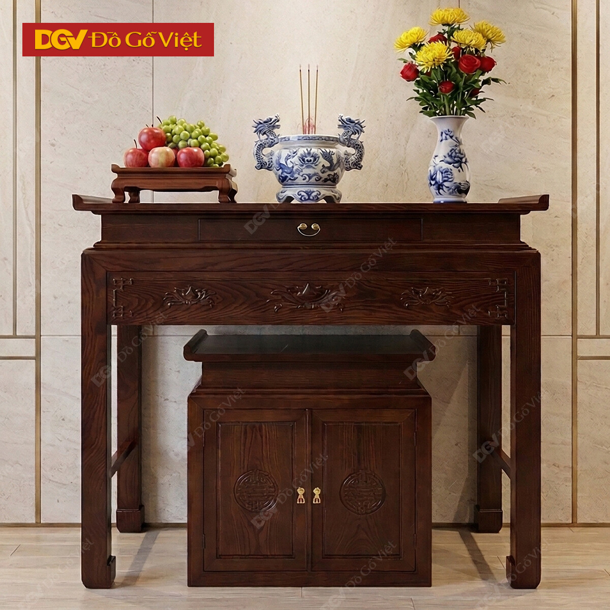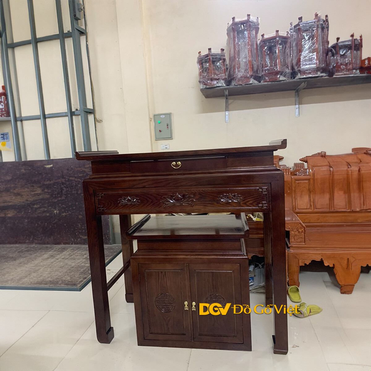 Bàn Thờ Án Gian Gỗ Đẹp Chạm Hoa Sen 3 Bông Tinh Xảo
