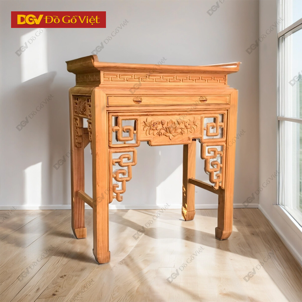 Bàn Thờ Án Gian Gỗ Gõ Đỏ 1m07 Hiện Đại Chạm Sen Tinh Tế