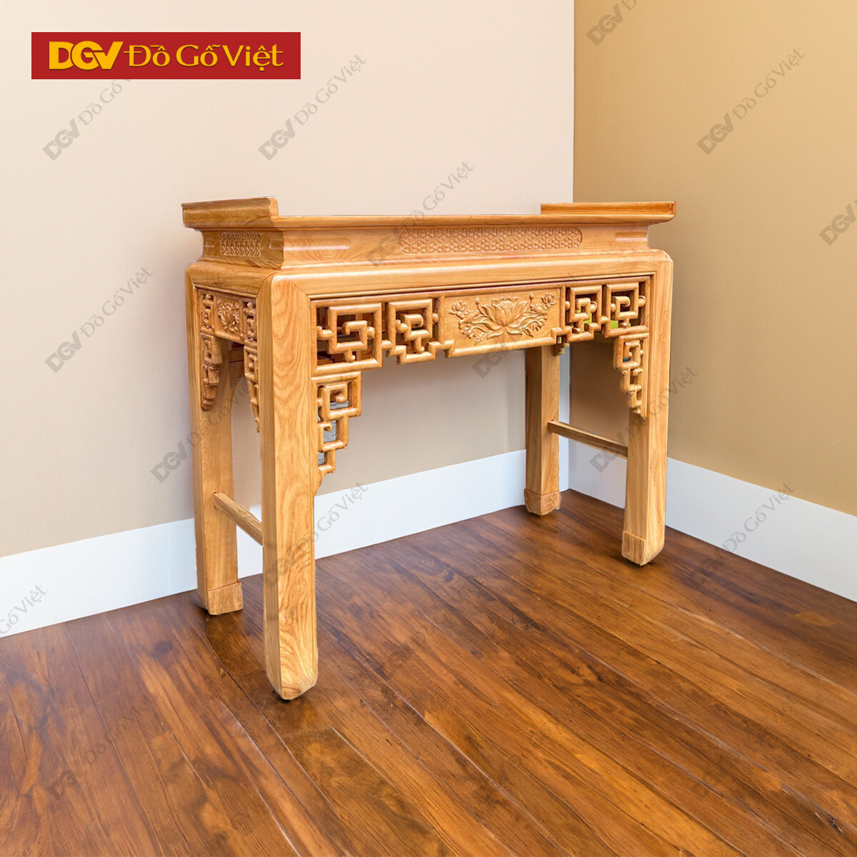 Bàn Thờ Án Gian Gỗ Gõ Đỏ 1m53 Chạm Sen Cao Cấp