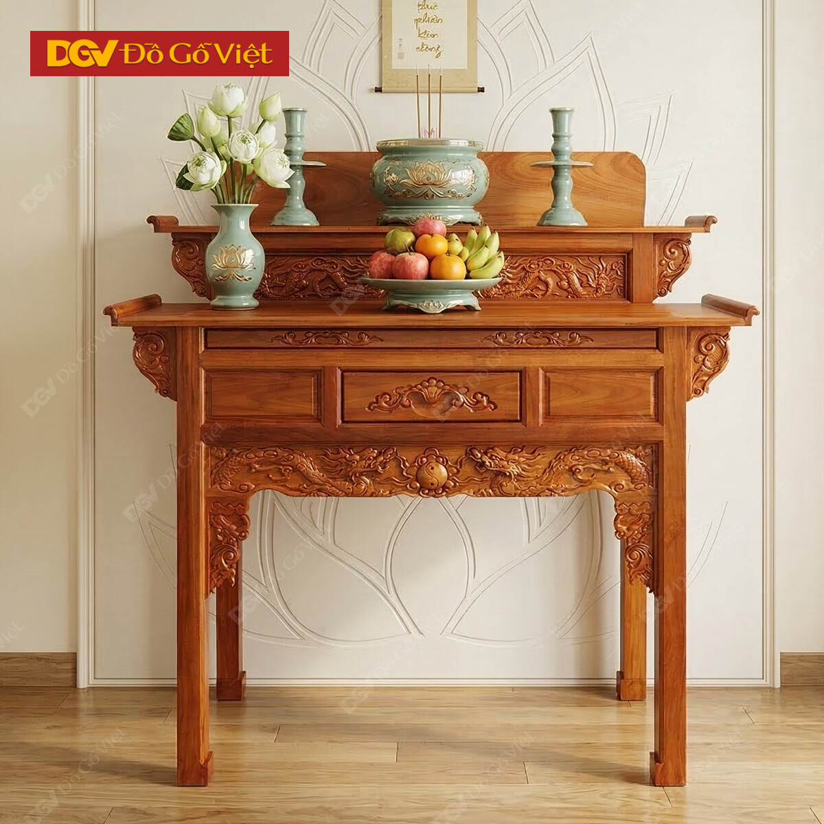 Bàn Cúng Gia Tiên Gỗ Tự Nhiên Căm Xe Mặt Gõ