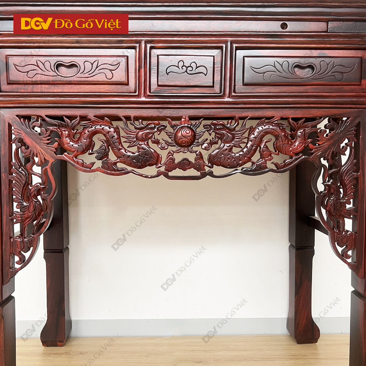 Bàn Thờ Gia Tiên 1 Tầng Gỗ Muồng Chạm Họa Tiết Long Phụng
