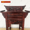 • Bàn thờ gỗ muồng chạm Nghê tinh xảo được thiết kế theo phong cách truyền thống với các họa tiết chạm nổi trên nền gỗ tự nhiên. Từng đường nét đều được chạm khắc khéo léo, mài nhẵn và đánh bóng kỹ lưỡng để tạo nên tính ấn tượng cao về mặt thẩm mỹ. Biểu trưng cho sự an yên, có tính sát khí trừ tà, cầu bình an cho gia chung.