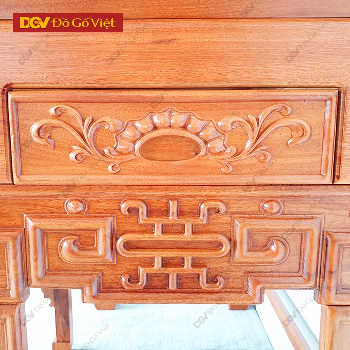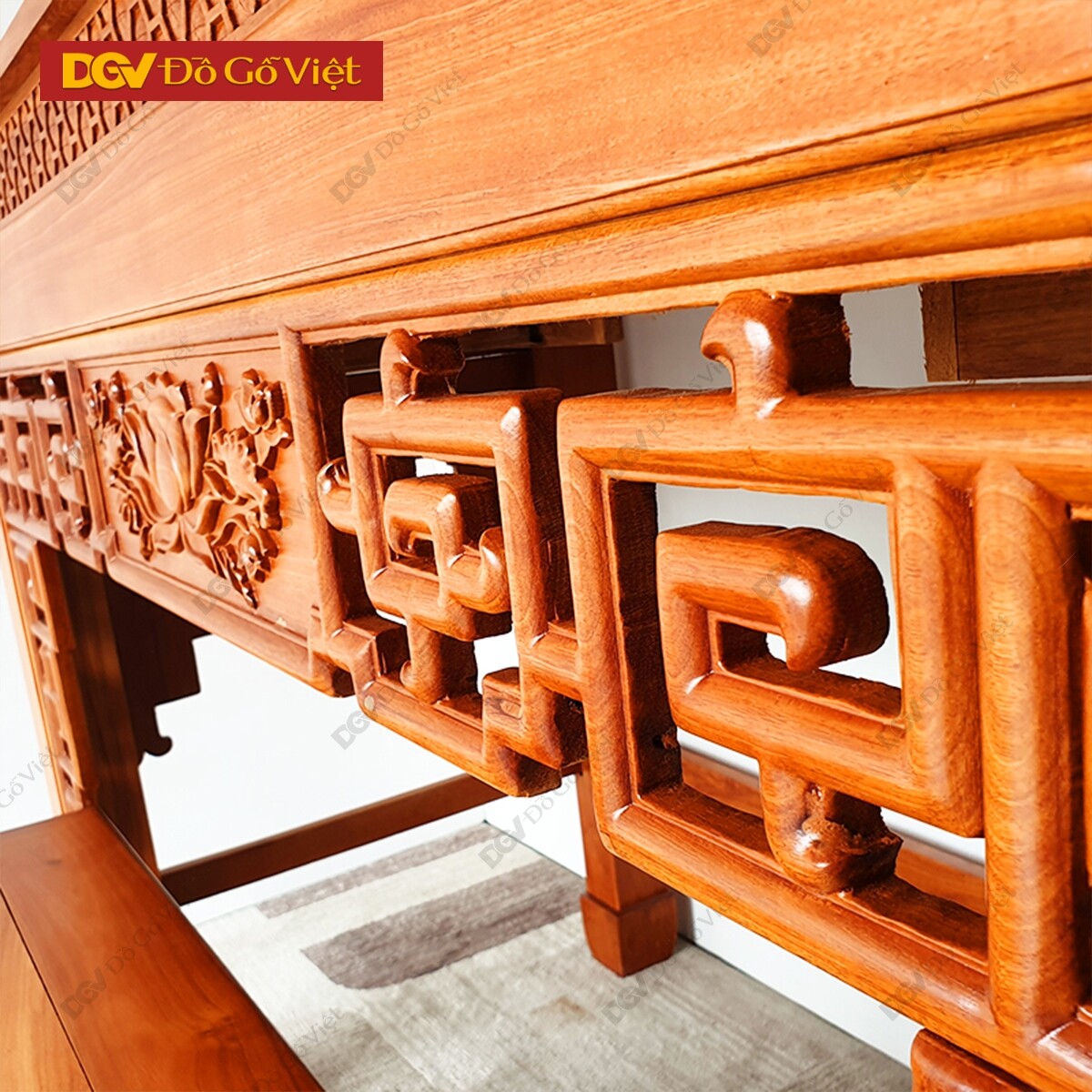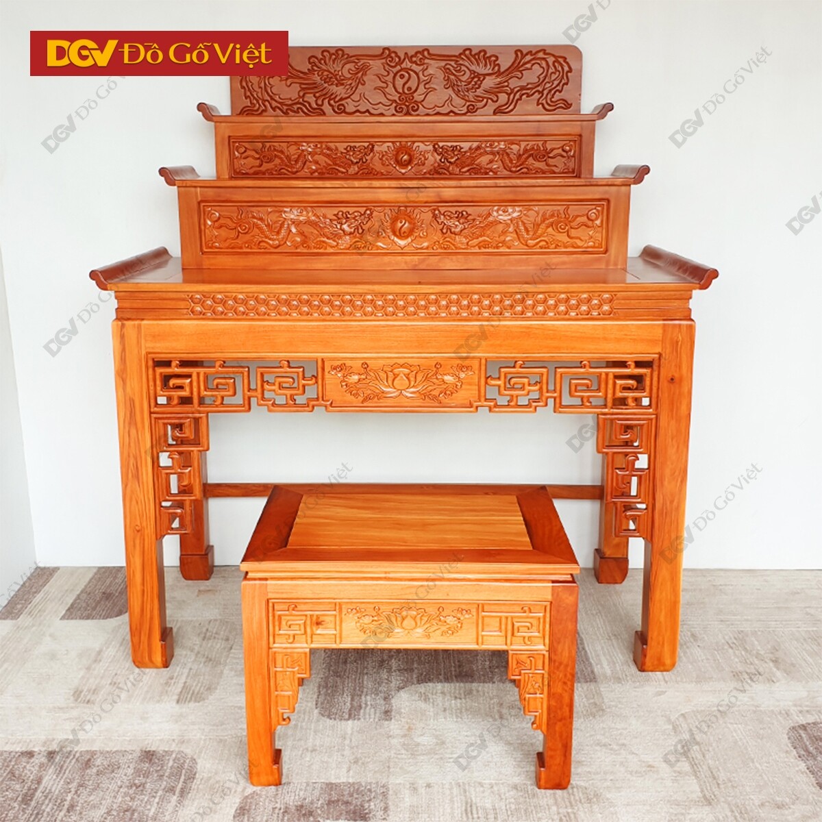 Bàn Thờ Gia Tiên Gỗ Căm Xe Mặt Gõ 3 Tầng Chạm Rồng Phụng Đẹp