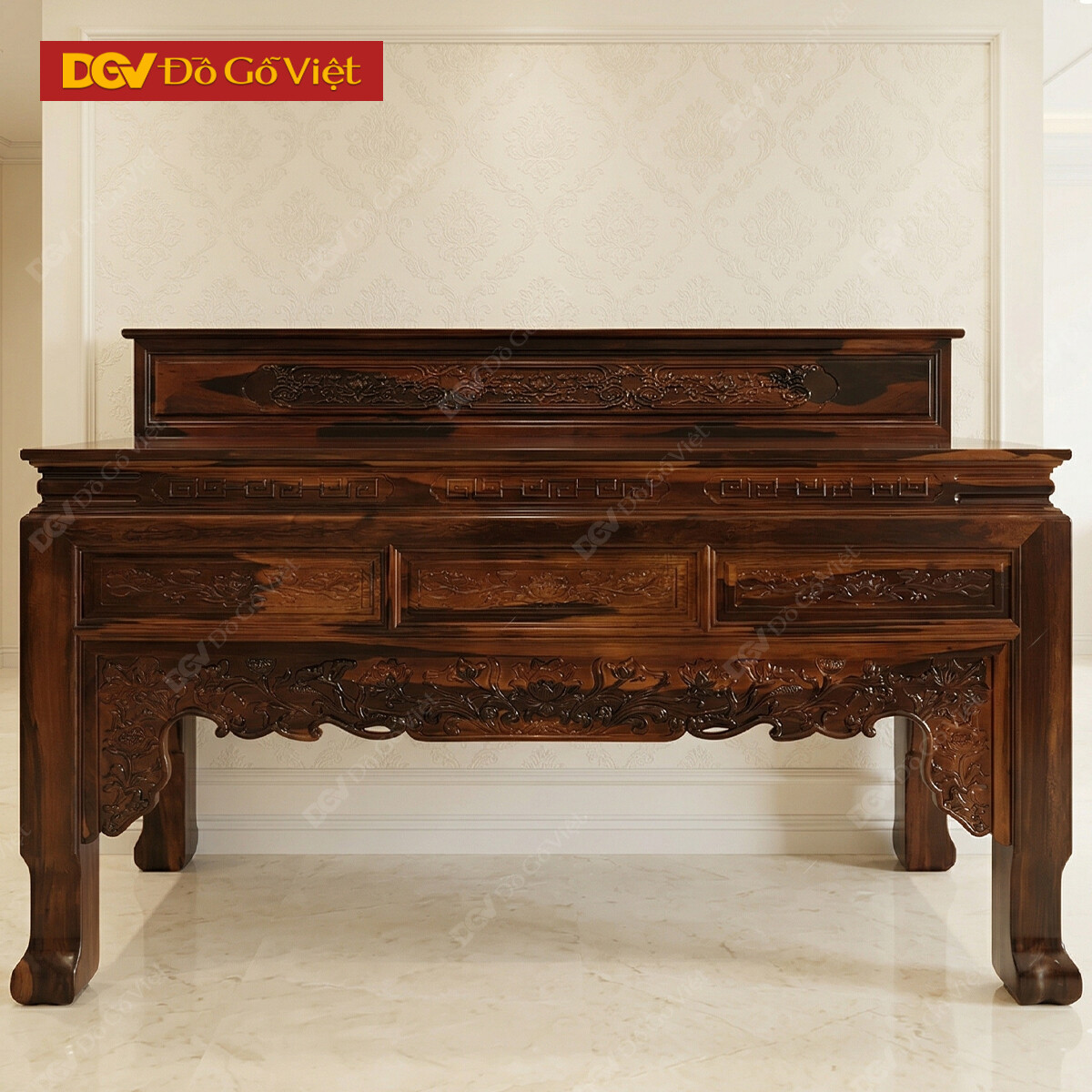 Bàn Thờ Gia Tiên Gỗ Muồng 2 Tầng Chạm Sen Đẹp Mắt