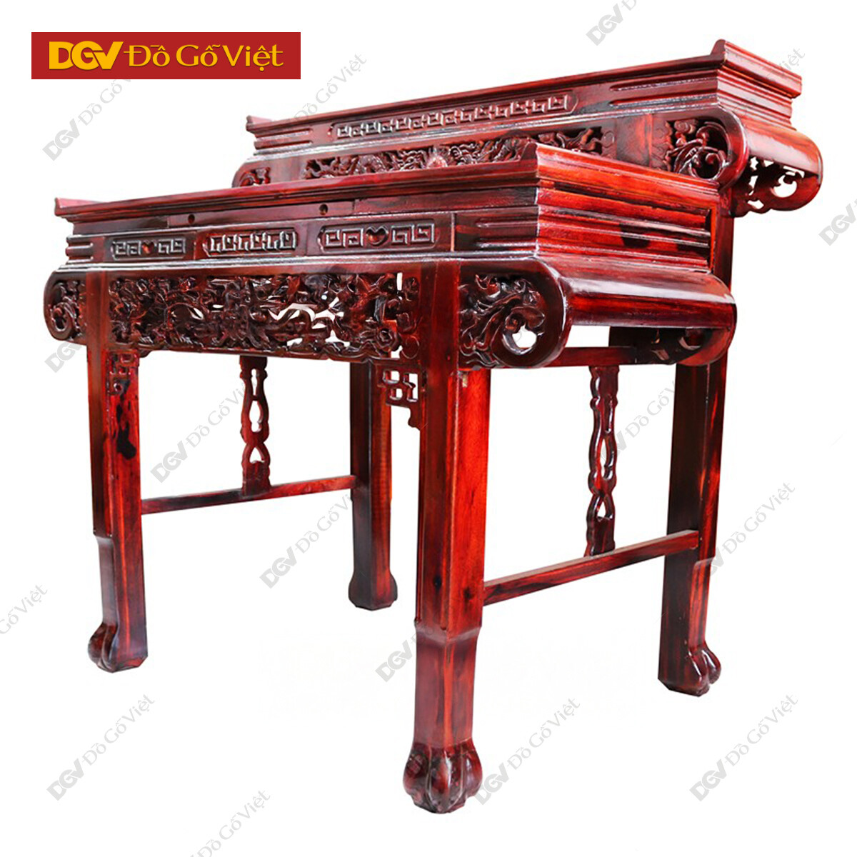 Các họa tiết điêu khắc đều được chạm nổi kết hợp chạm hoa văn tinh xảo trên từng chi tiết nhỏ đem lại sự tinh tế mang giá trị thẩm mỹ cao tạo nên vẻ đẹp đẳng cấp cho không gian thờ cúng của mỗi gia đình.
