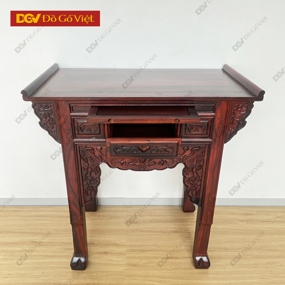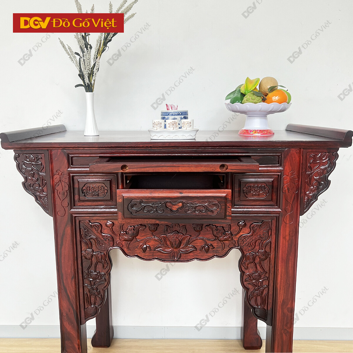 Bàn Thờ Gỗ Muồng 1 Tầng Chạm Hoa Sen Phong Thủy May Mắn