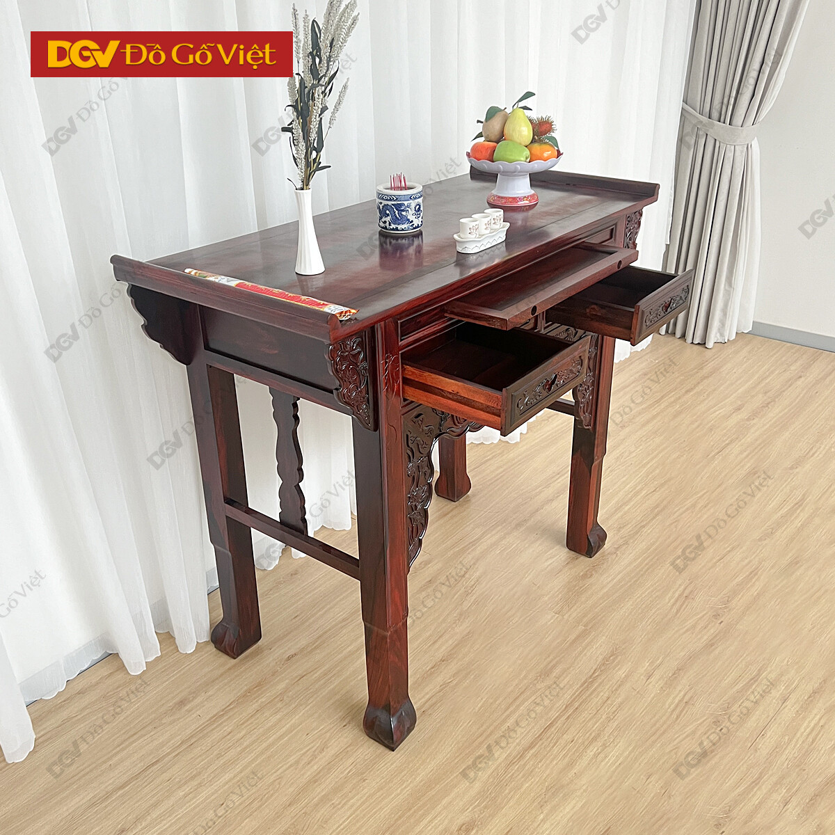 Bàn Thờ Gia Tiên 1 Tầng Gỗ Muồng Đẹp Cho Gia Đình