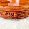 • Bàn thần tài xoan đào thiết kế kiểu hộp truyền thống, 2 cột chạm nổi họa tiết song long đẹp mắt. Các họa tiết được trau chuốt tỉ mỉ, từng đường vảy rồng, vuốt rồng chạm trổ tinh tế tạo nên nét đẹp cuốn hút cho sản phẩm. 2 cột trụ được bắt đinh bám chắc vào 2 đầu, giữ cho kết cấu được ổn định & cân bằng.