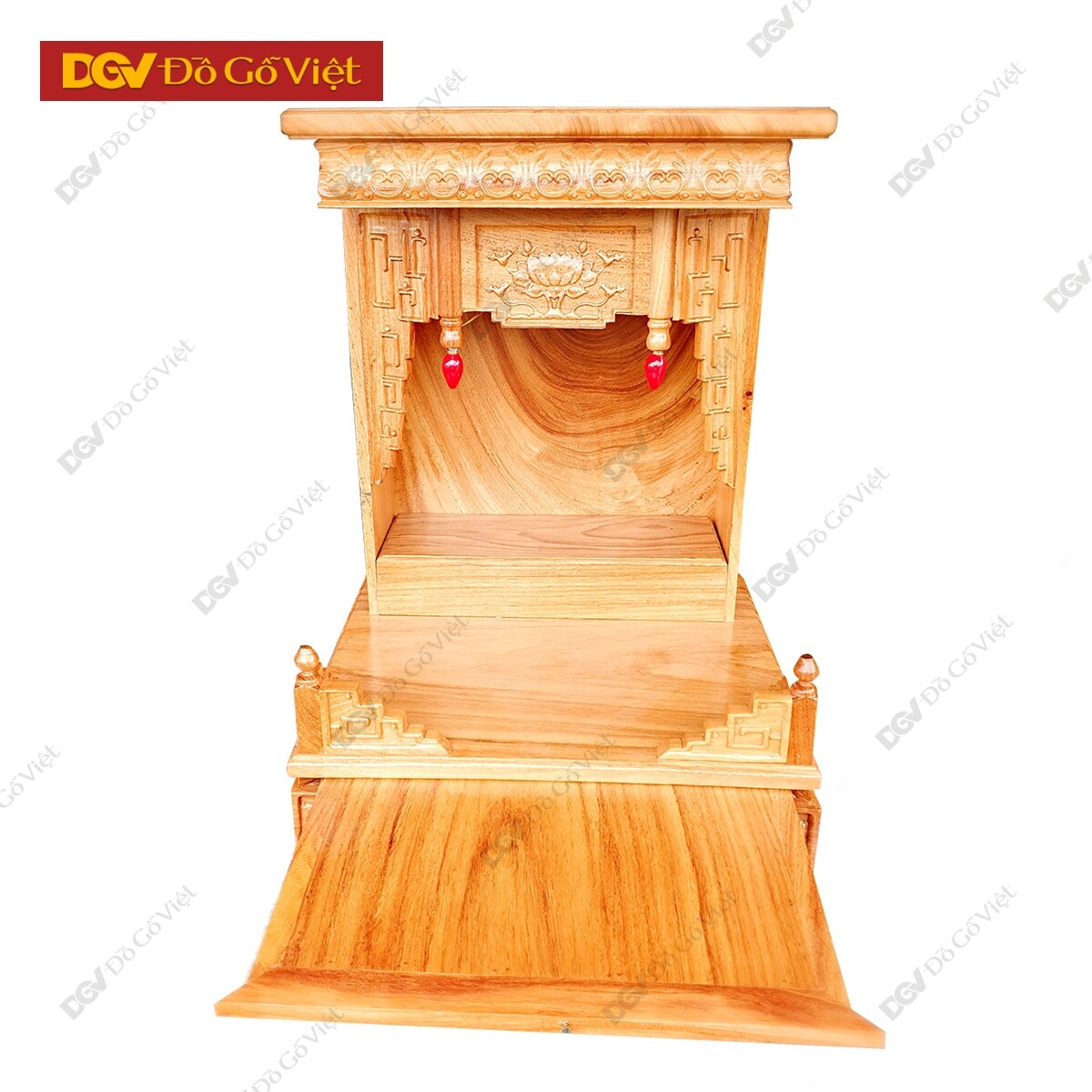 Bàn Thờ Thần Tài Nhỏ Gỗ Gõ Đỏ Có Hộp Đèn