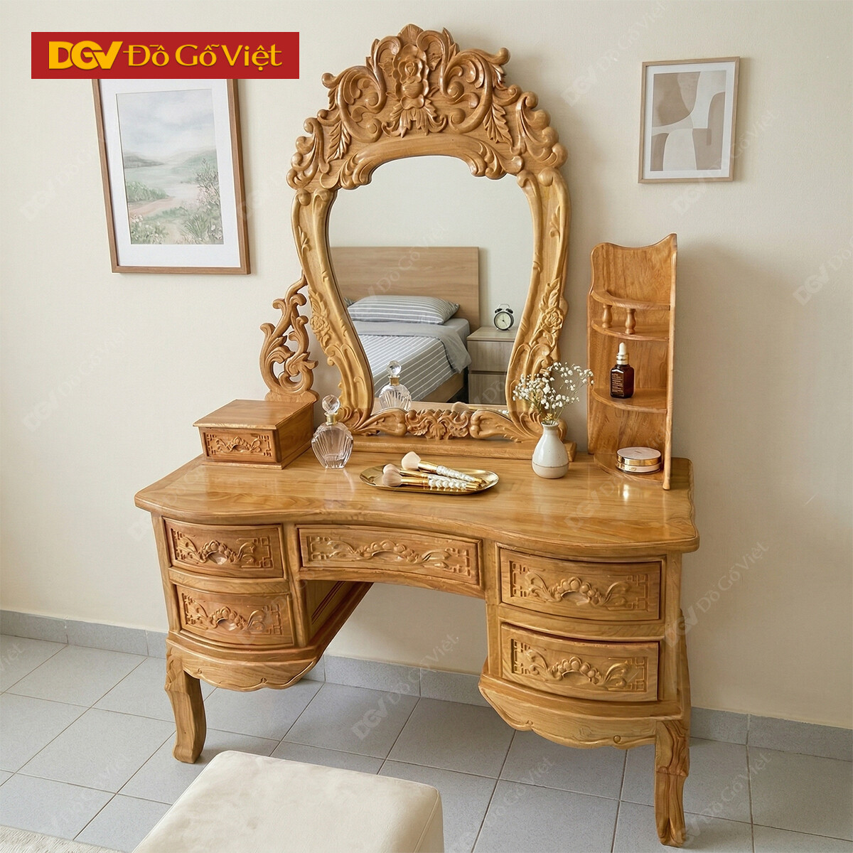 Bàn Trang Điểm Gỗ Gõ Đỏ Chạm Đẹp Giá Rẻ