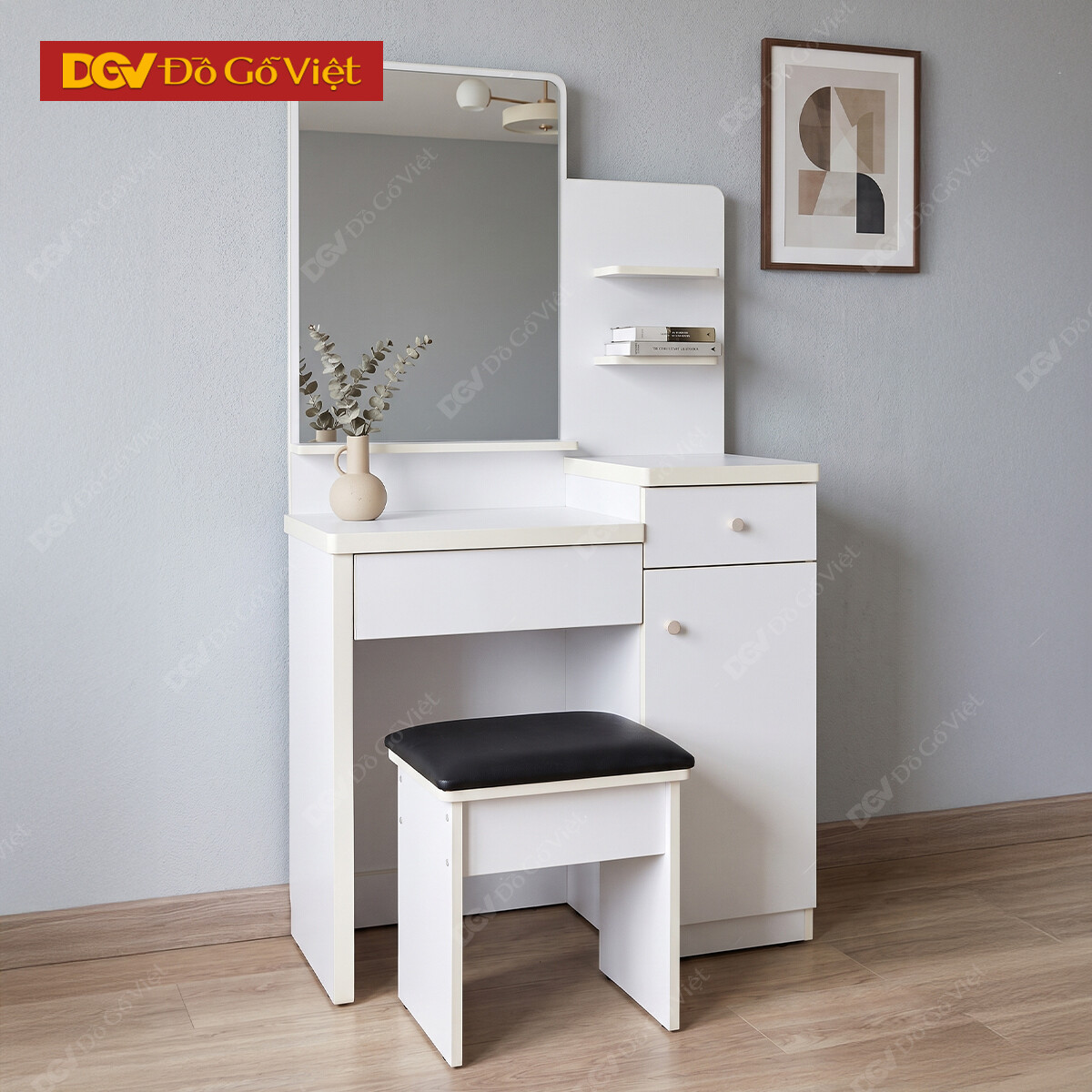 Bàn Trang Điểm Gỗ MDF Cánh Sơn Trắng Phối Gương Giá Rẻ