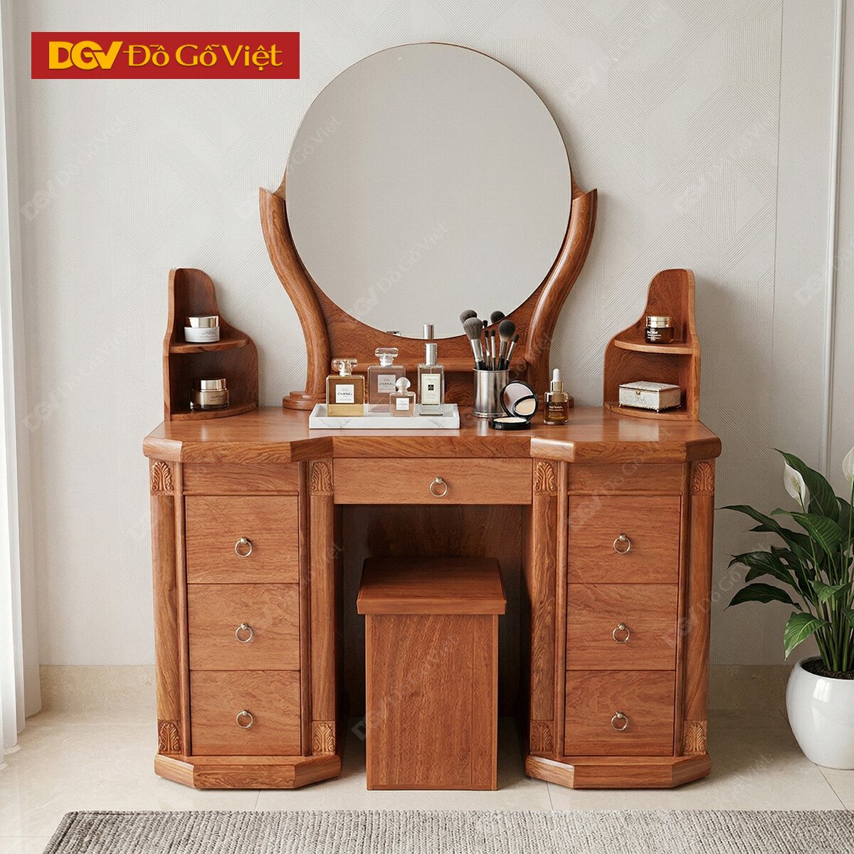 Bàn Trang Điểm Gỗ Hương Đá 2 Thùng Kính Cong Đẹp Giá Rẻ