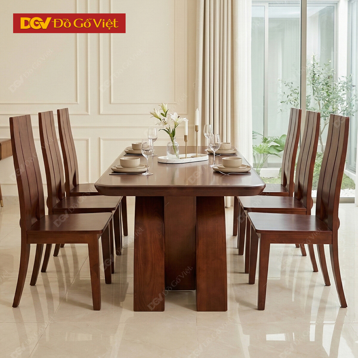 Bộ Bàn Ăn 6 Ghế Gỗ Sồi Nga Cao Cấp Màu Óc Chó Hiện Đại