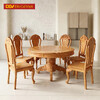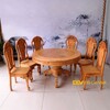Bàn Ăn Căm Xe Mặt Gõ Chữ Nhật Cong 1m9 8 Ghế