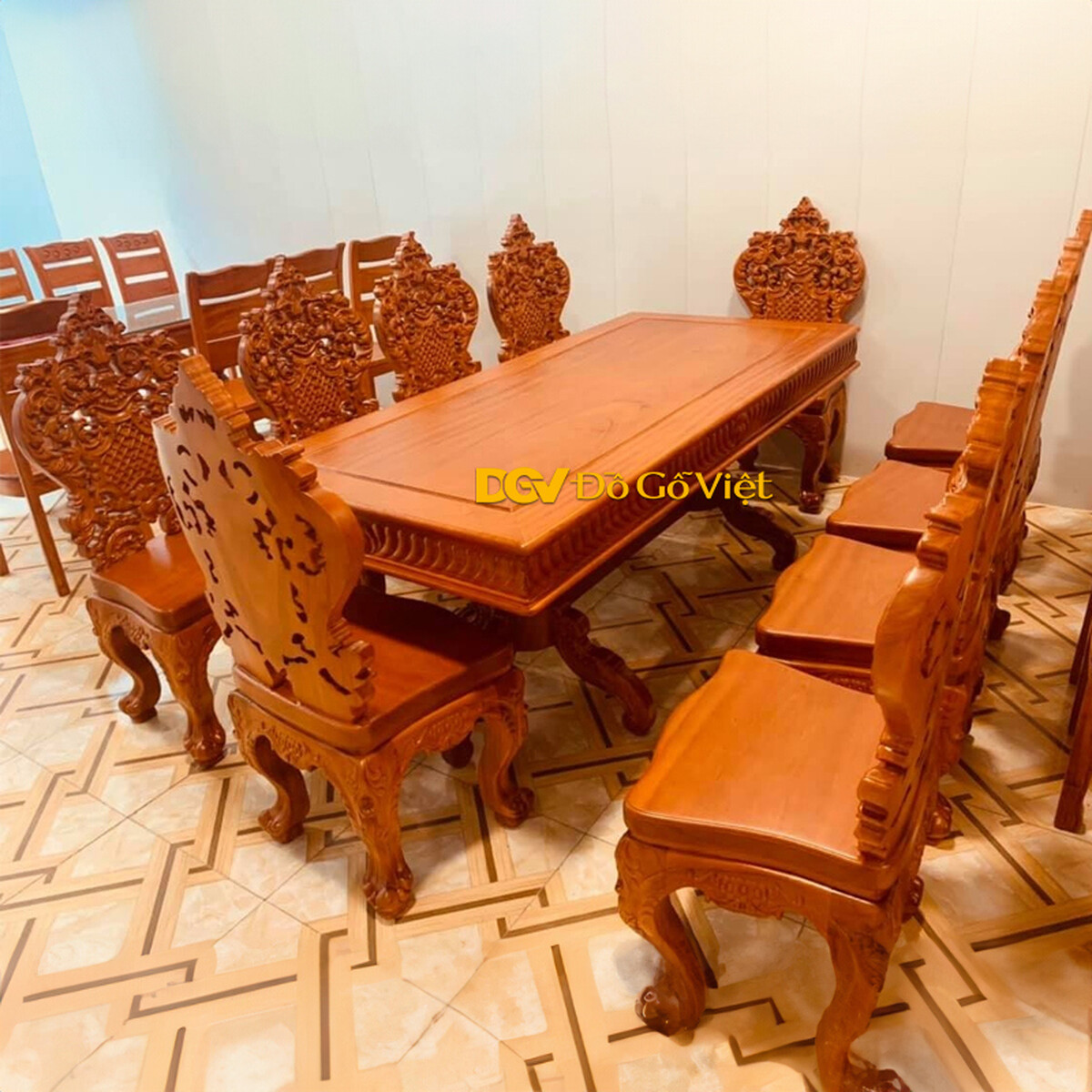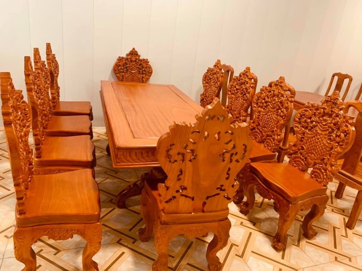 Bộ Bàn Ăn Cổ Điển Gỗ Gõ Đỏ Nguyên Chất 100% Đẹp Giá Tốt